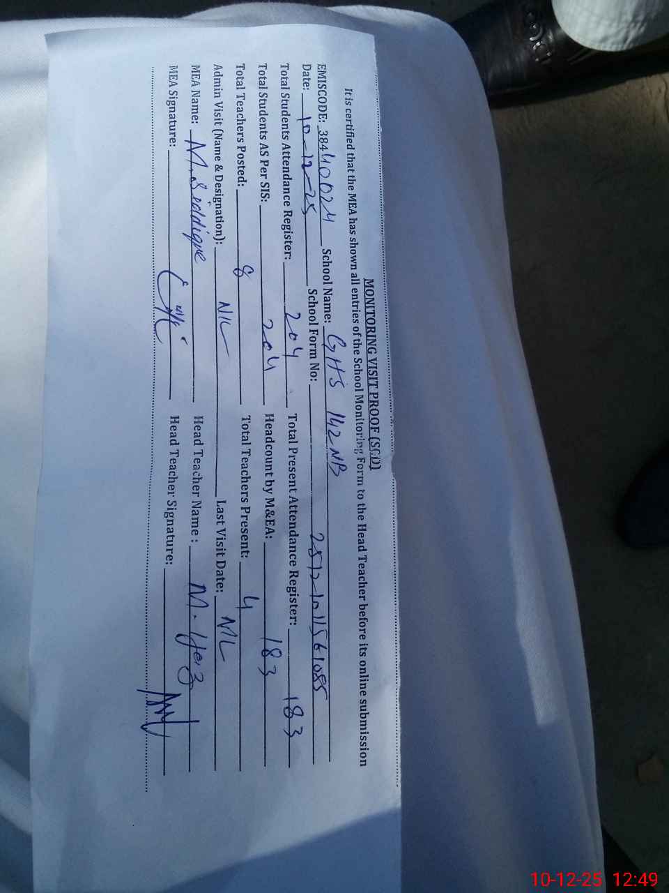 | EMIS Code: 38440024 | Name of School: GHS CHAK NO.142 NB | |||