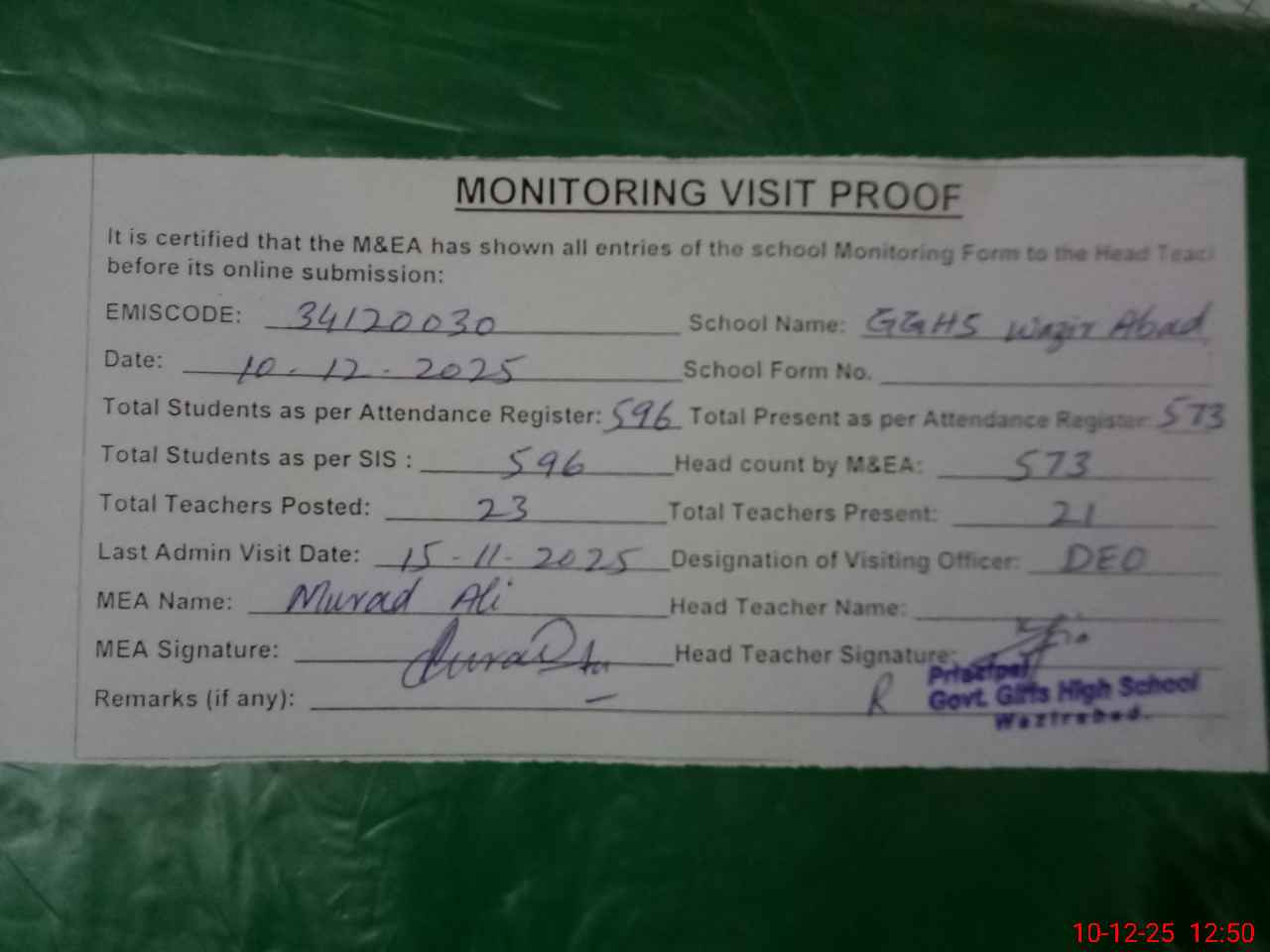 | EMIS Code: 34120030 | Name of School: GGHS WAZIRABAD | |||