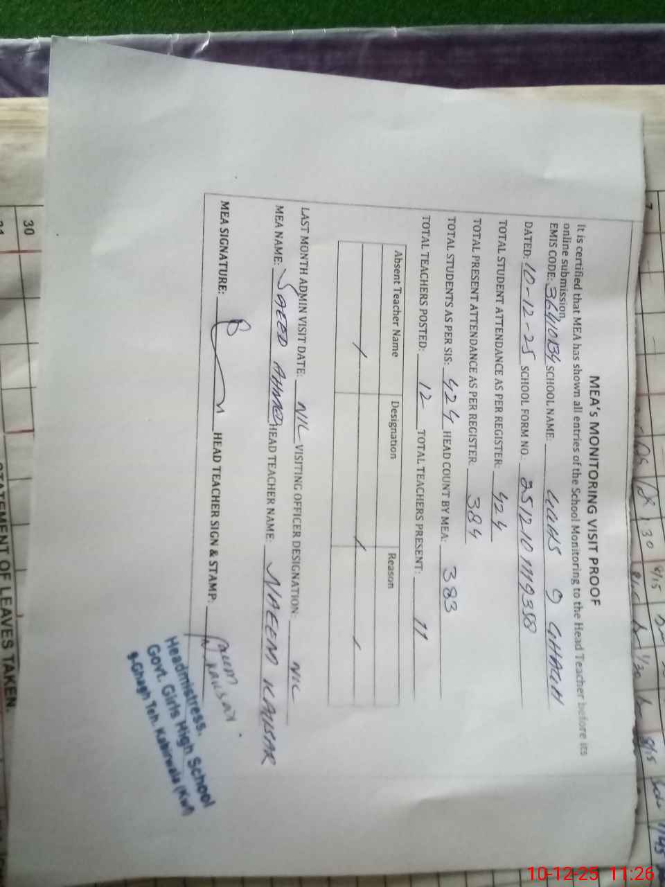 | EMIS Code: 36410134 | Name of School: GGHS 9 GHAGH, ABDUL HAKIM | |||
