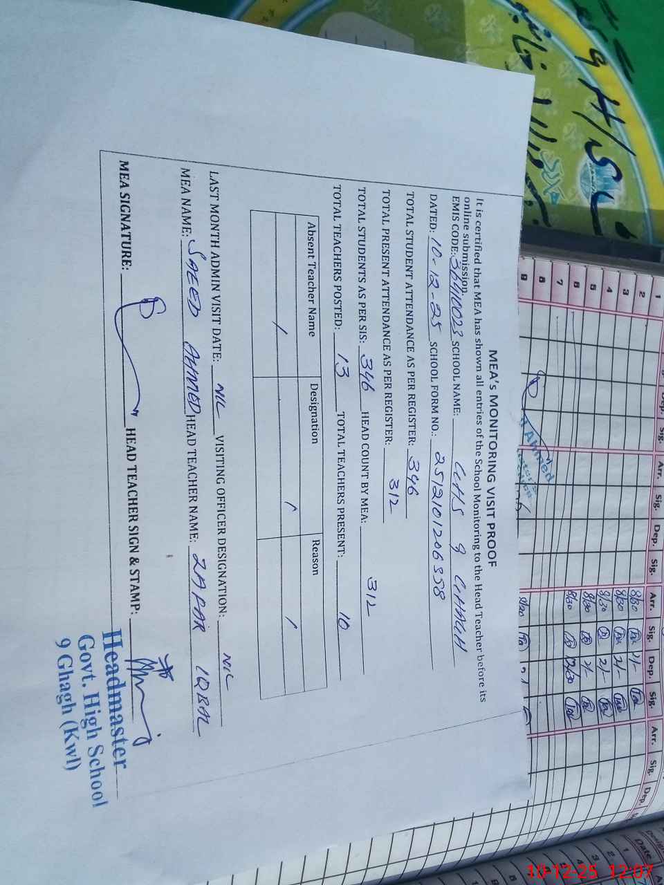 | EMIS Code: 36410023 | Name of School: GHS 9 GHAGH, ABDUL HAKIM | |||