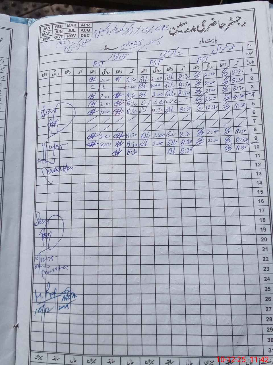 | CNIC | Full Name | Designation | R/C | Absence During Last Calender Month |