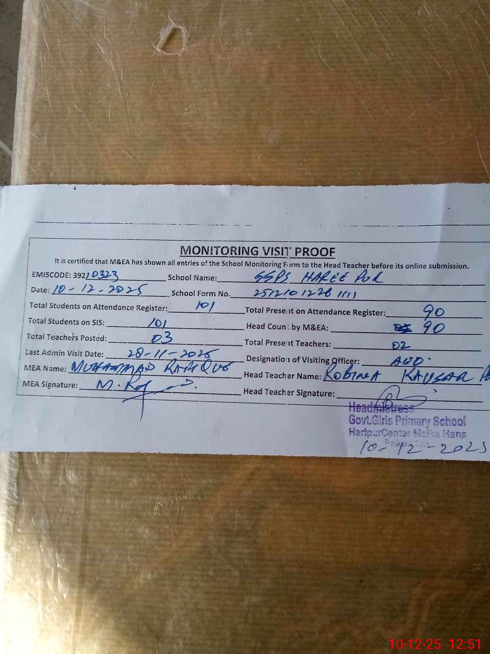 | EMIS Code: 39210323 | Name of School: GGPS HAREE PUR | |||