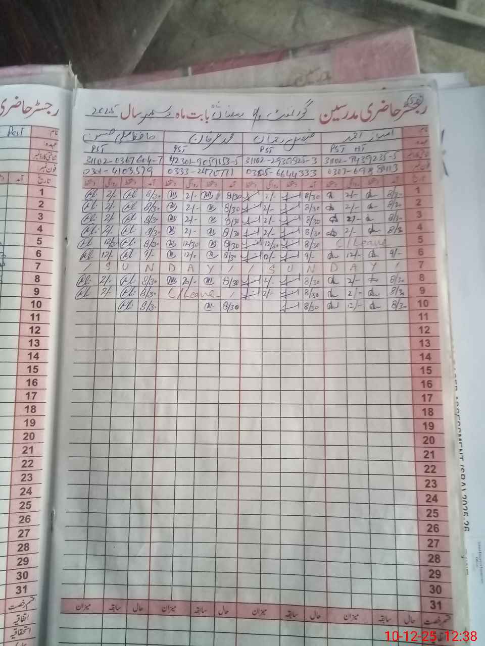 | CNIC | Full Name | Designation | R/C | Absence During Last Calender Month |