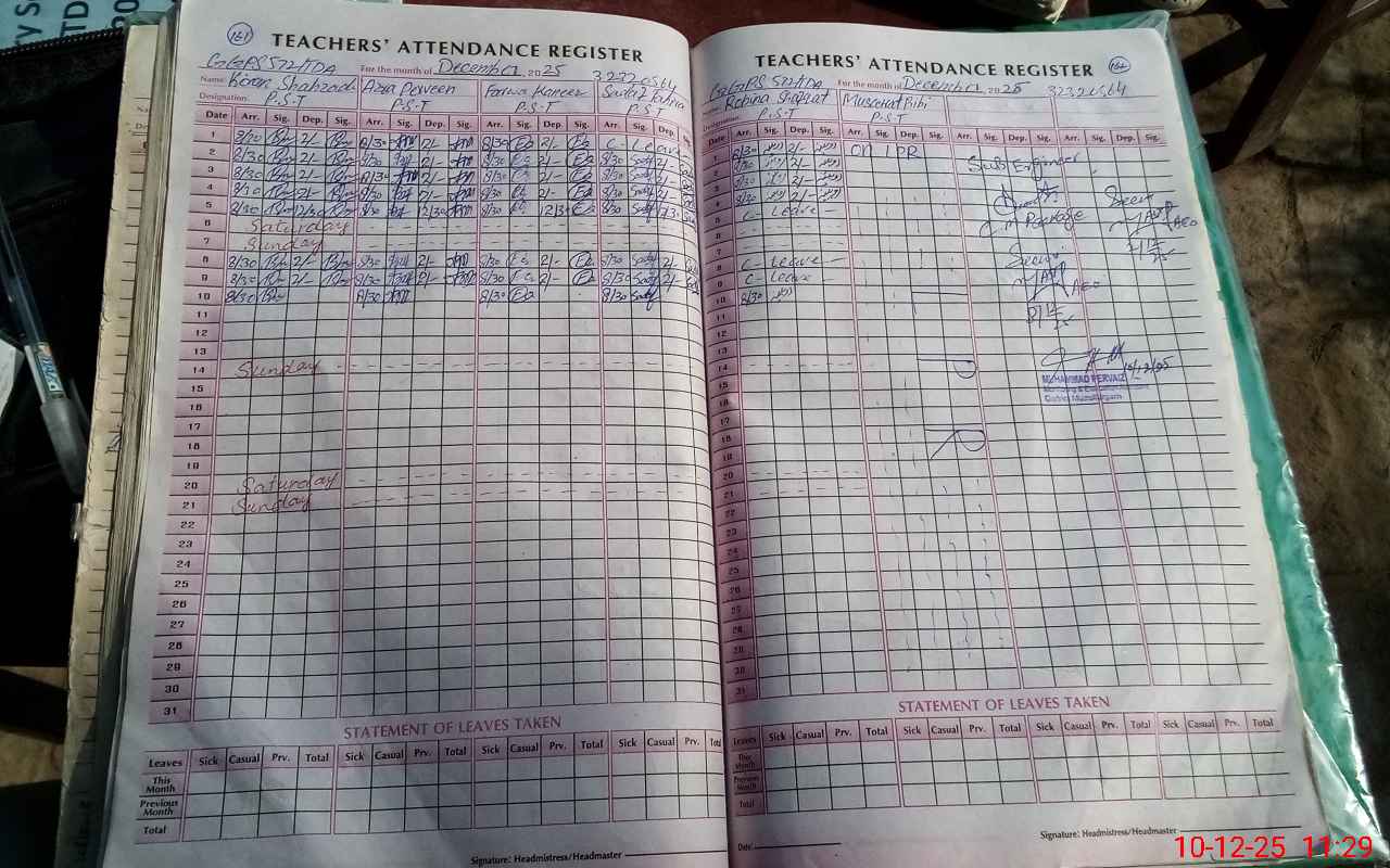 | Attendance Register | Head Teacher | MEA with School | Visit Proof |