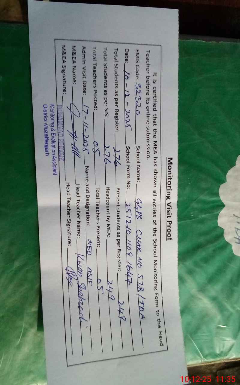 | EMIS Code: 32320564 | Name of School: GGPS CHAK NO. 572 TDA | |||