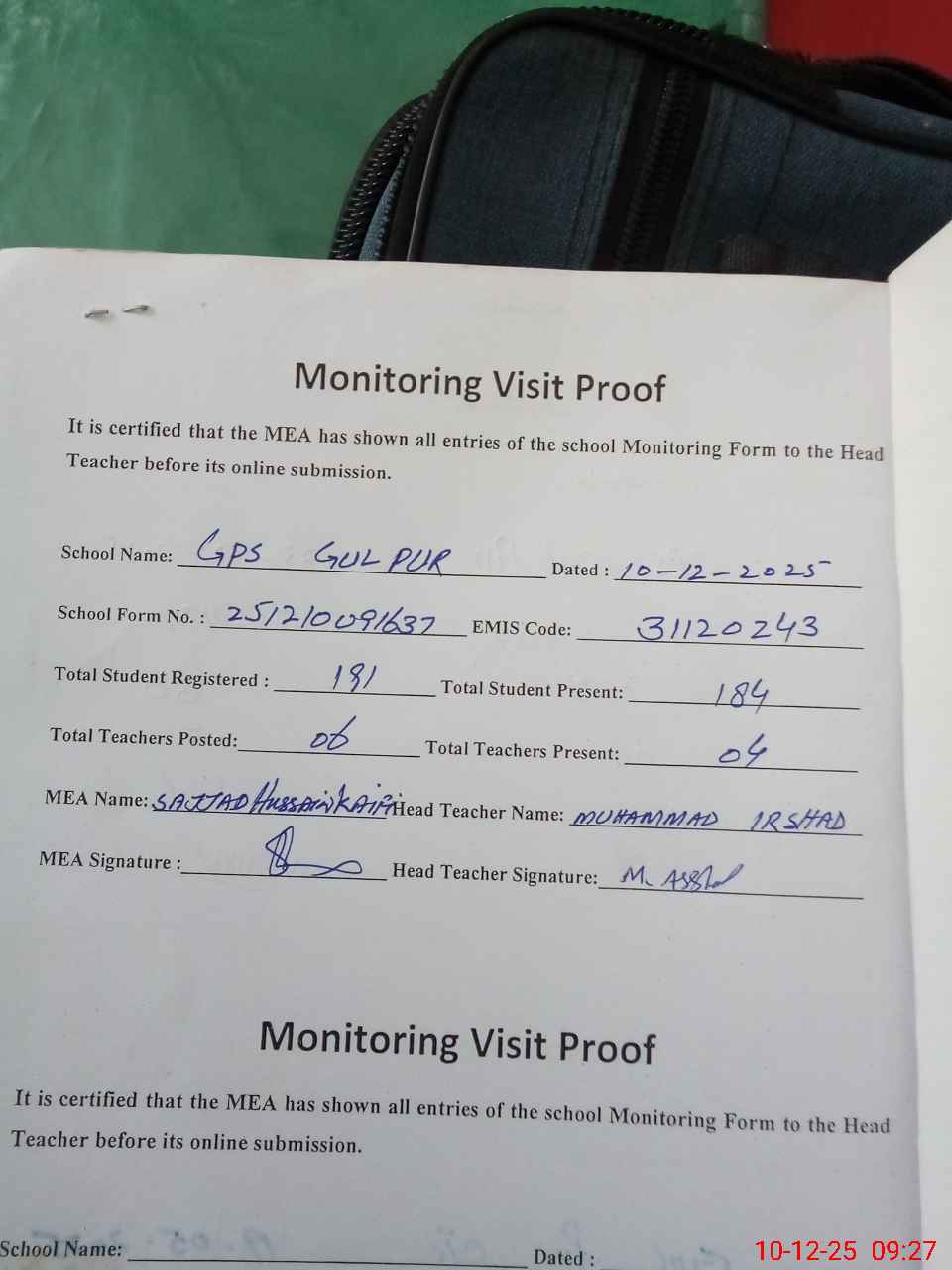 | EMIS Code: 31120243 | Name of School: GPS GUL PUR | |||