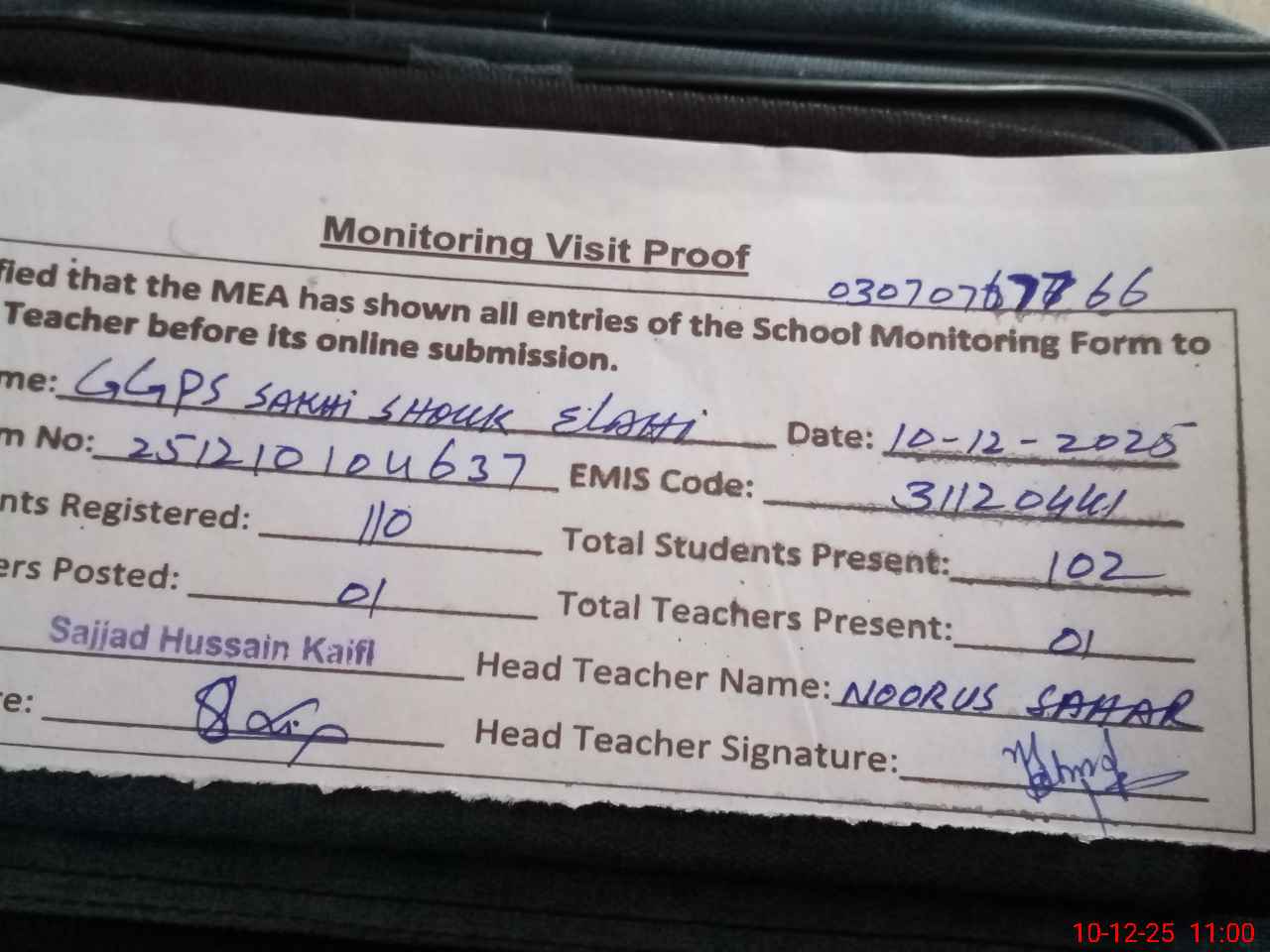 | EMIS Code: 31120441 | Name of School: GGPS SAKHI SHOUK ELAHI | |||