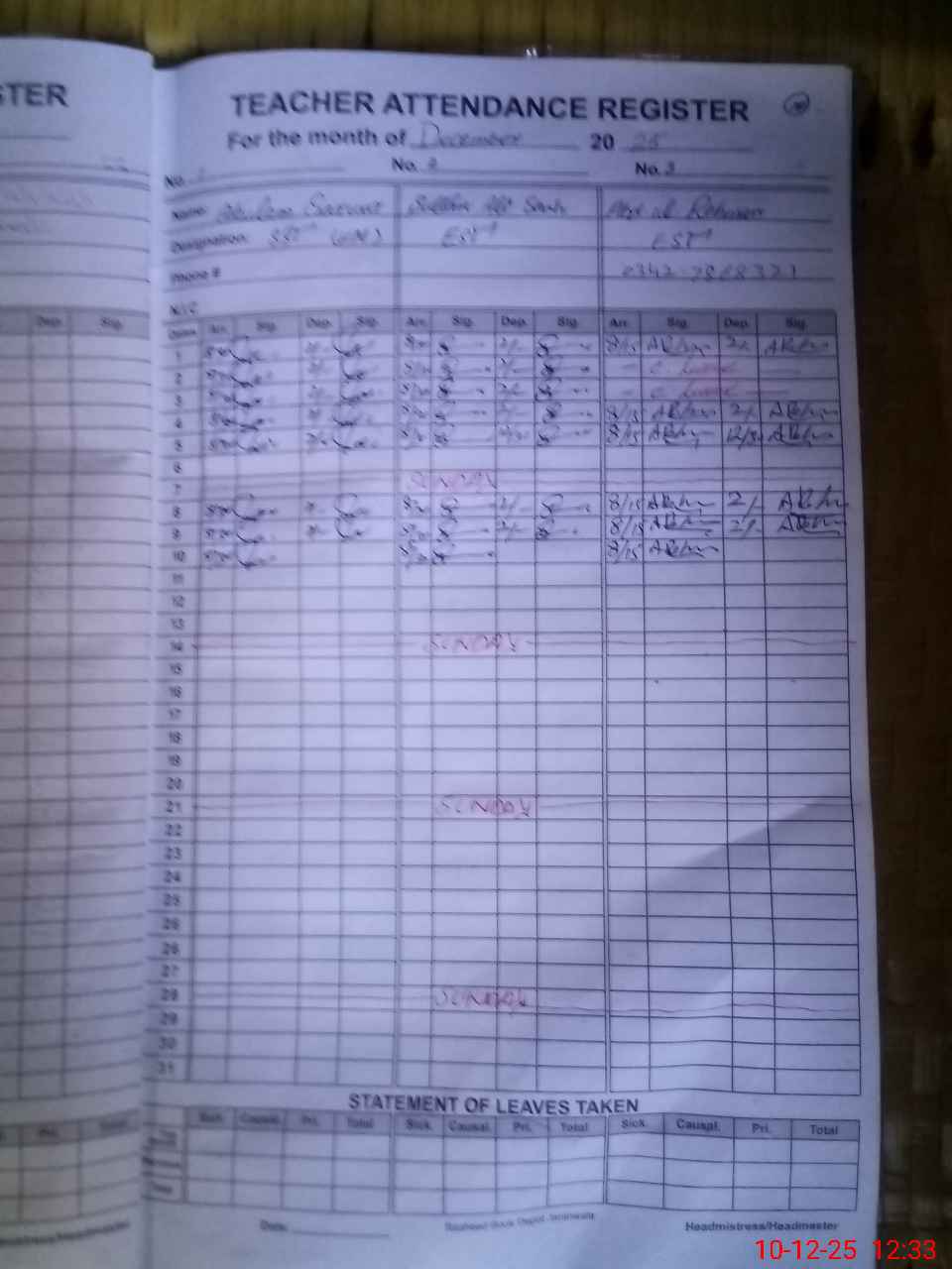 | Name: GH**** SA**** Designation: (School Headmaster's/Headmistress's) SST (GENERAL) Phone/Cell Number: 03**** |
