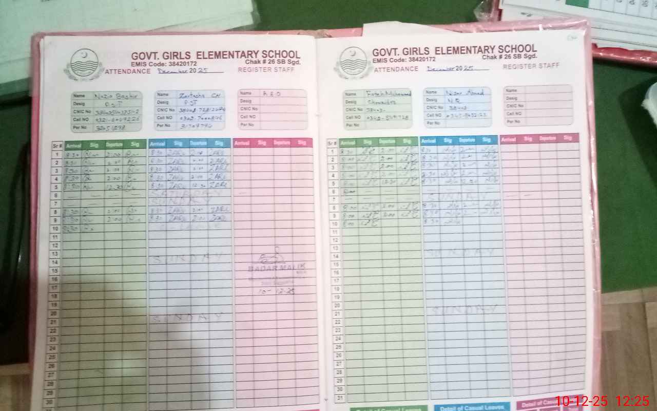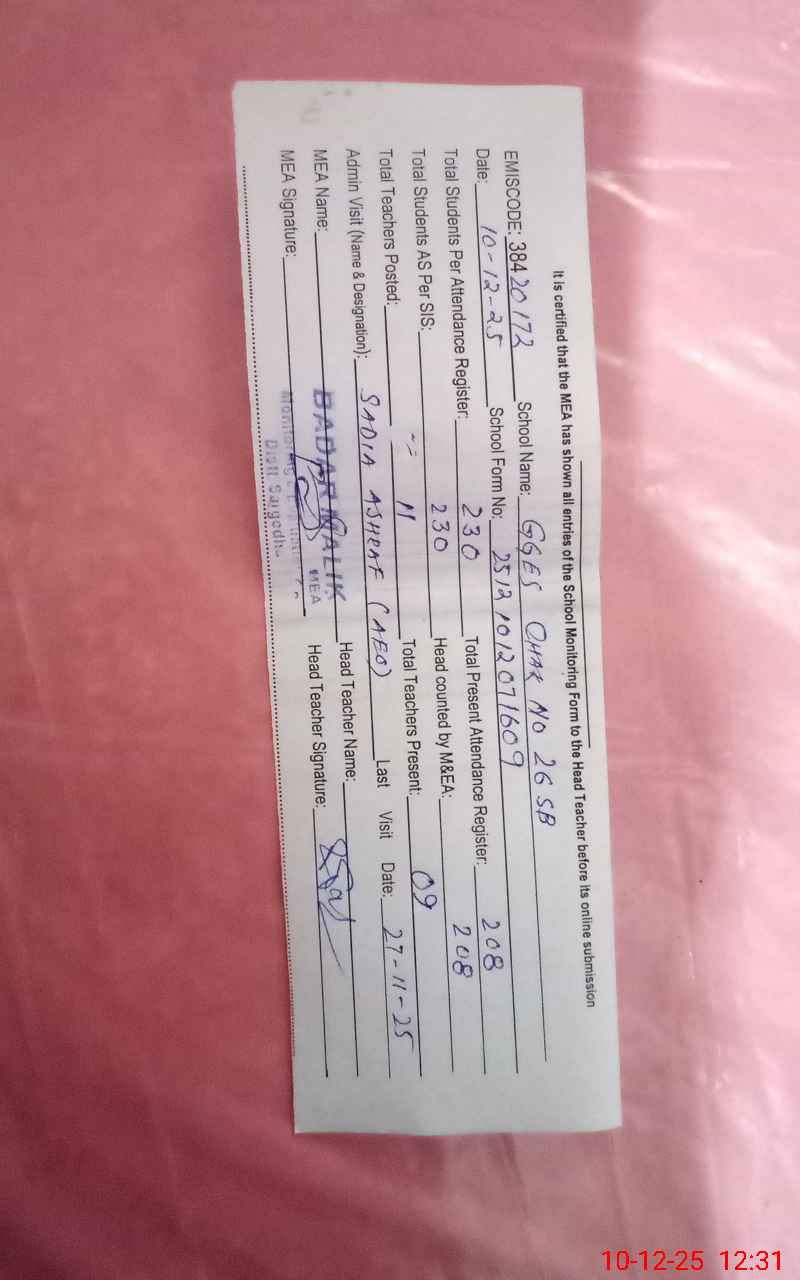 | EMIS Code: 38420172 | Name of School: GGES CHAK NO.26 SB | |||