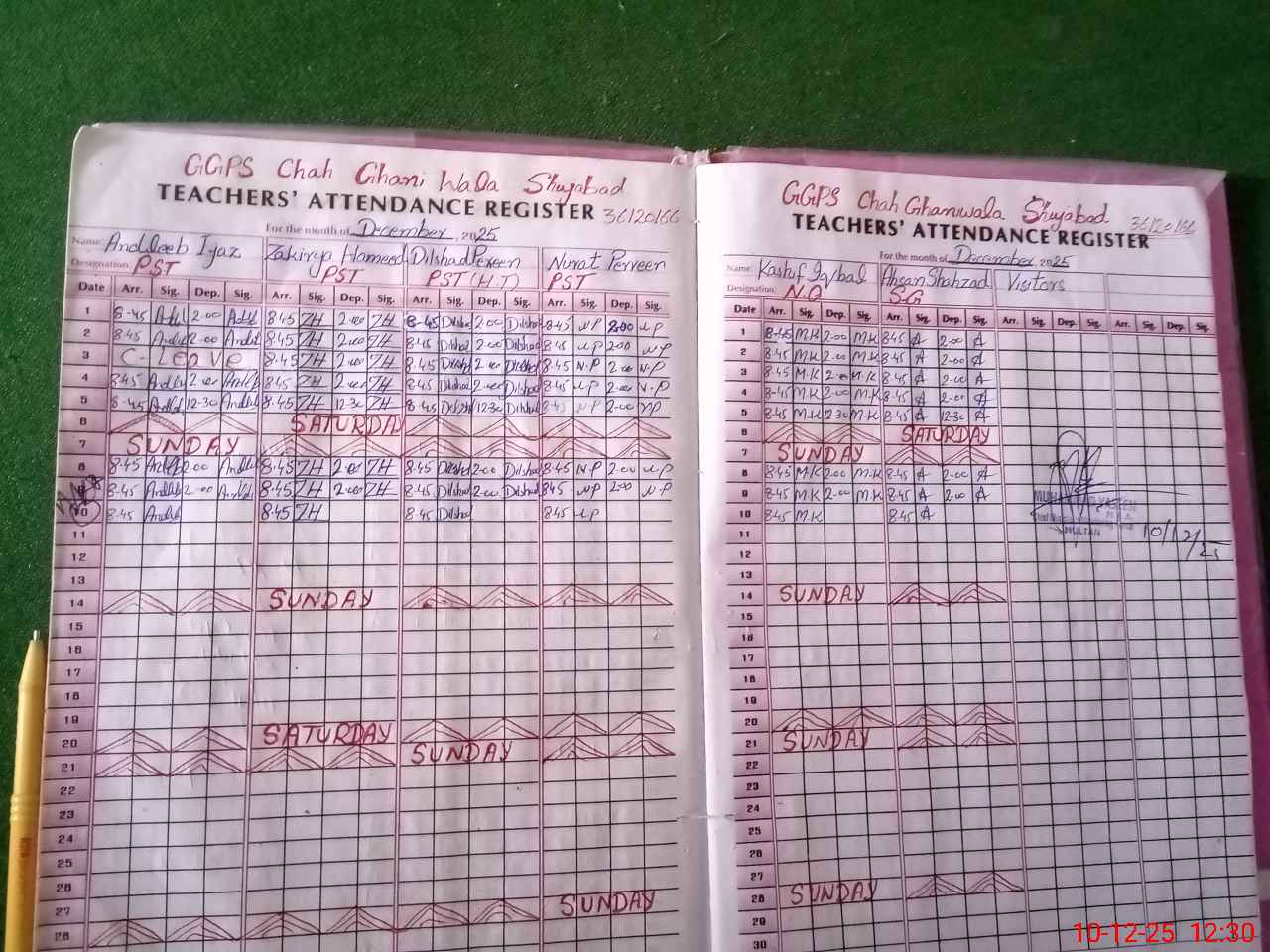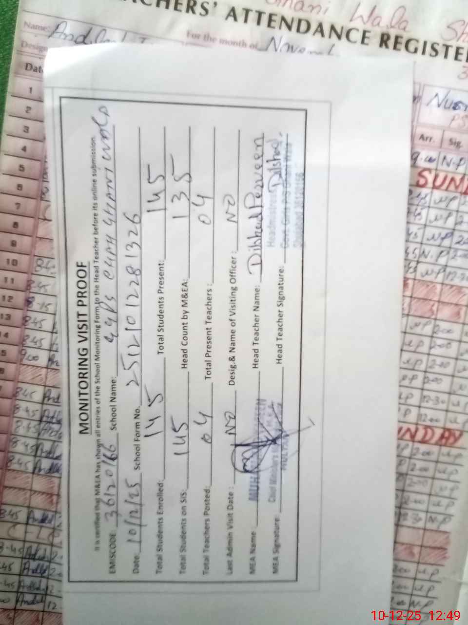 | Attendance Register | Head Teacher | MEA with School | Visit Proof |