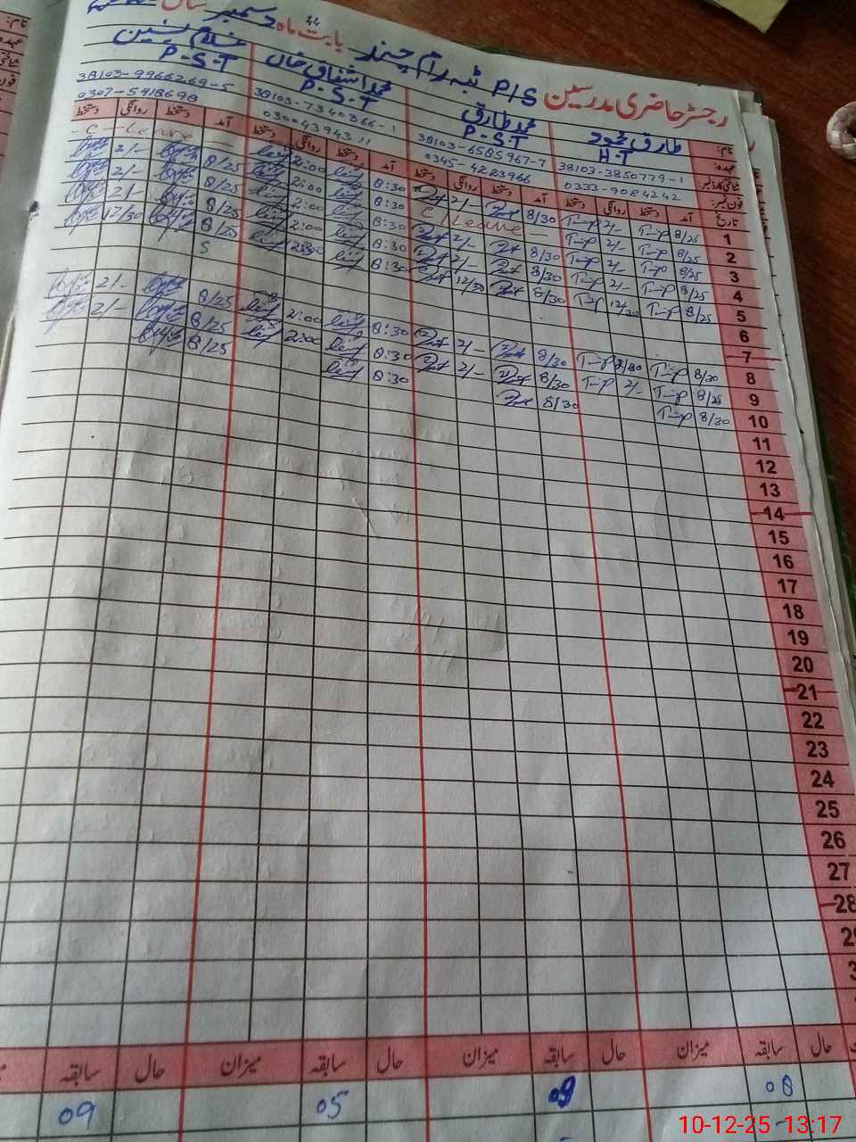 | CNIC | Full Name | Designation | R/C | Absence During Last Calender Month |