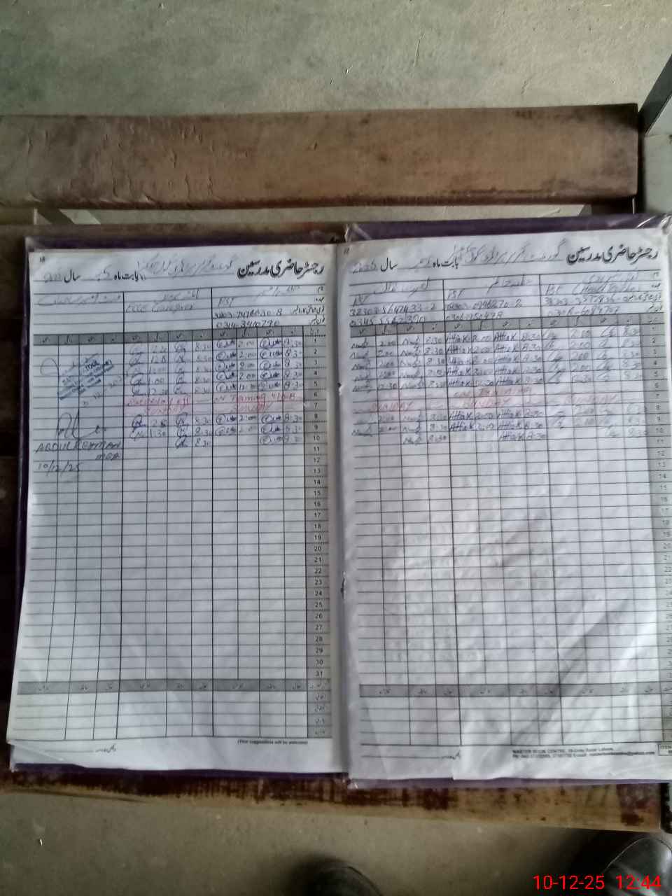 | CNIC | Full Name | Designation | R/C | Absence During Last Calender Month |