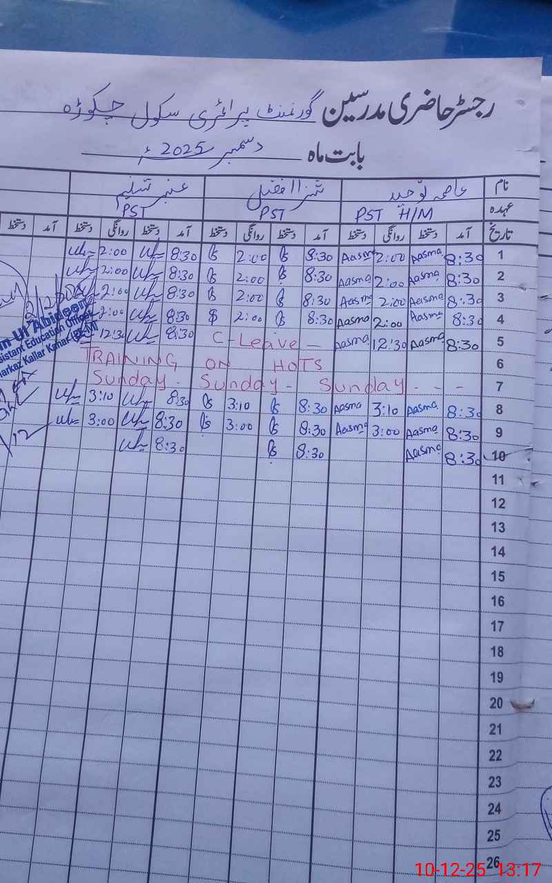 | District: CHAKWAL | Tehsil: KALLAR KAHAR | Markaz: KALLAR KAHAR-MALE | Level: Primary | |