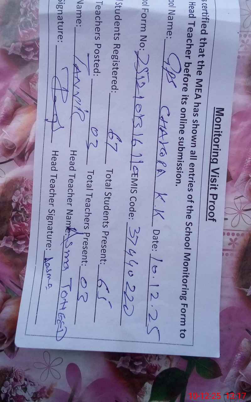 | Attendance Register | Head Teacher | MEA with School | Visit Proof |