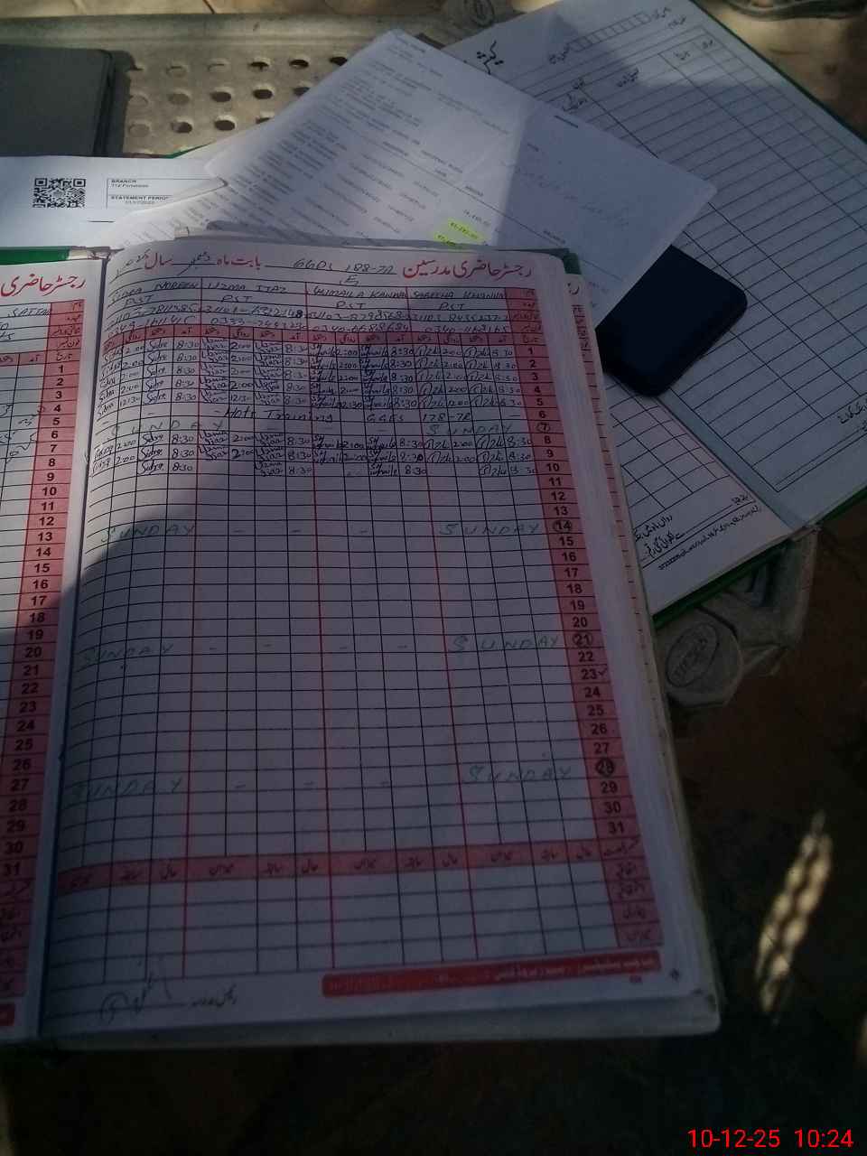 | CNIC | Full Name | Designation | R/C | Absence During Last Calender Month |