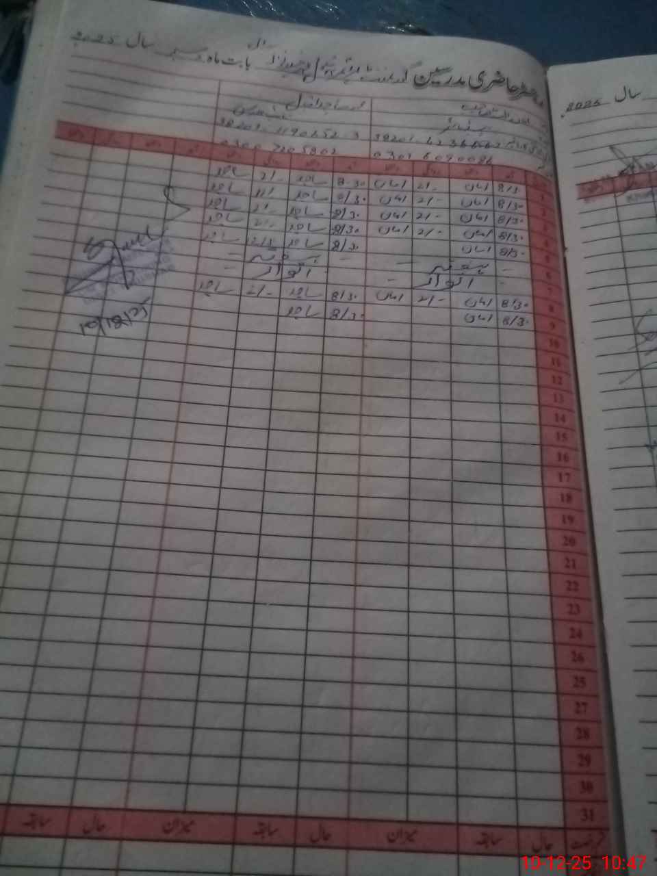 | CNIC | Full Name | Designation | R/C | Absence During Last Calender Month |