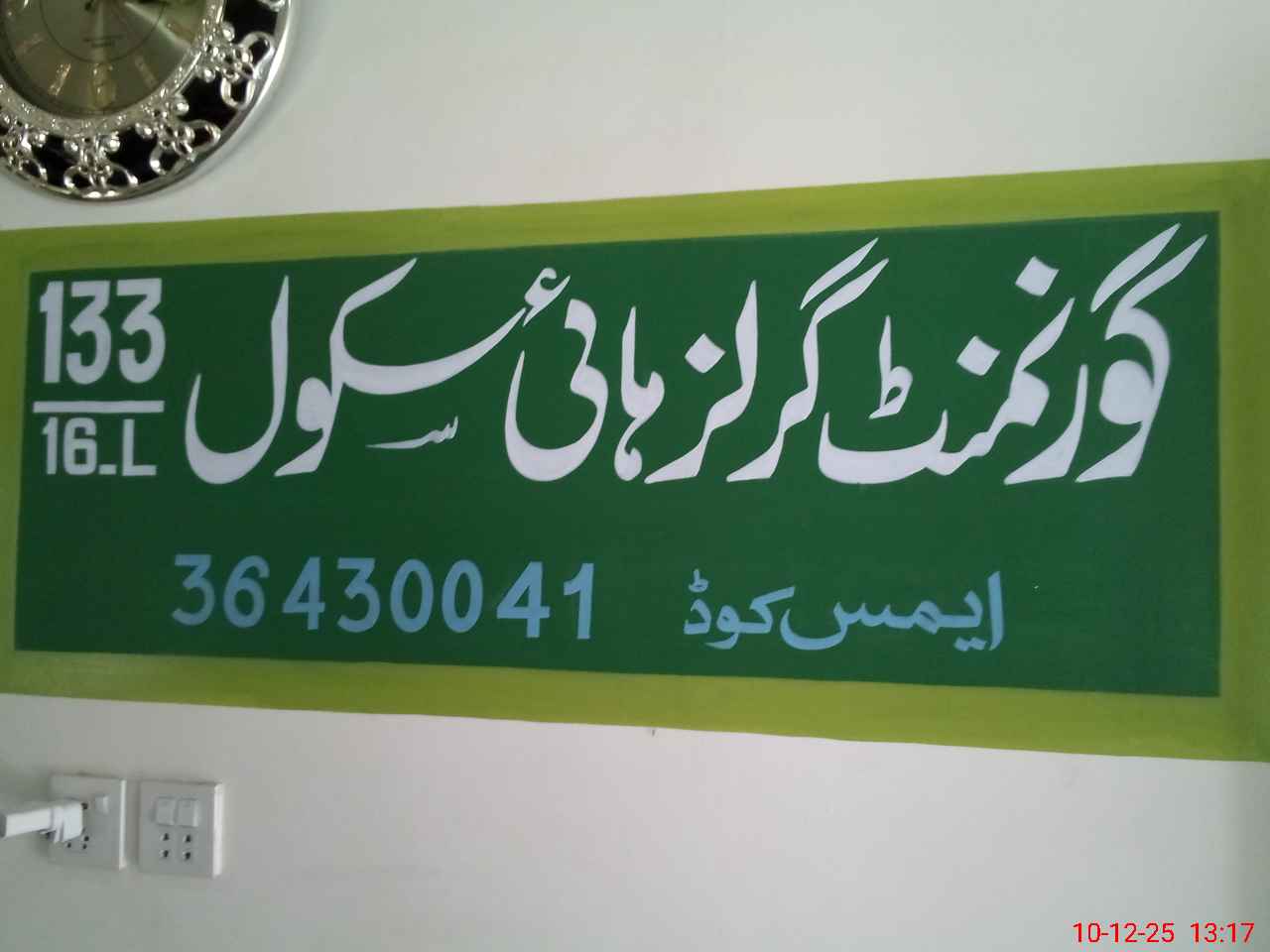 | EMIS Code: 36430041 | Name of School: GGHS 133/16-L, MIAN CHANNU | |||