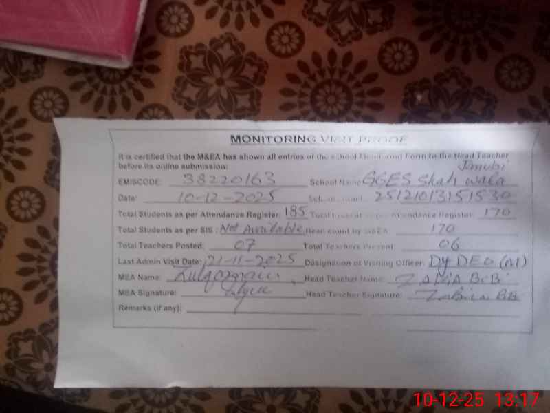 | EMIS Code: 38220163 | Name of School: GGES SHAH WALA JANUBI | |||