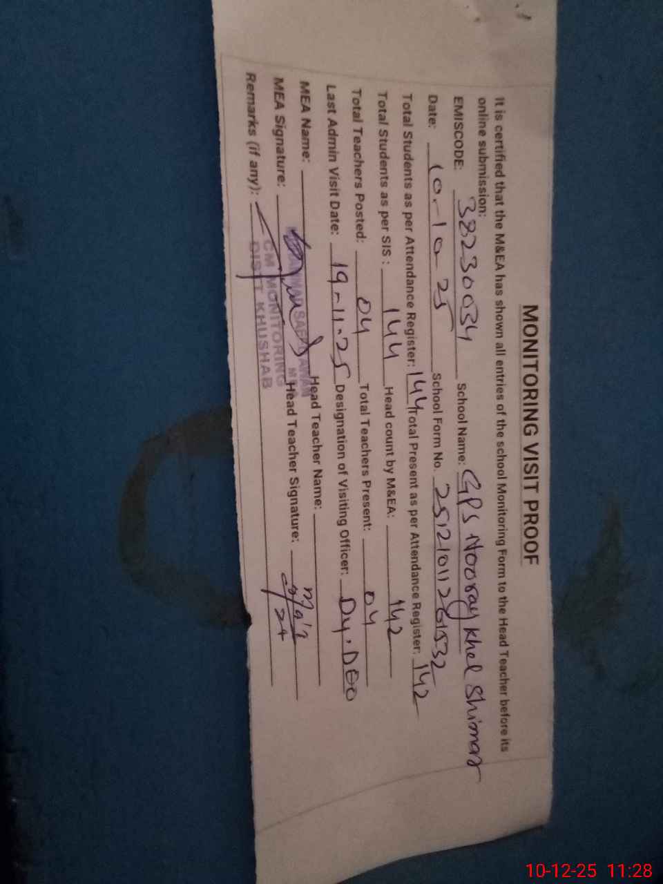 | EMIS Code: 38230034 | Name of School: GPS DERA NOORAY KHAIL SHIMAR | |||