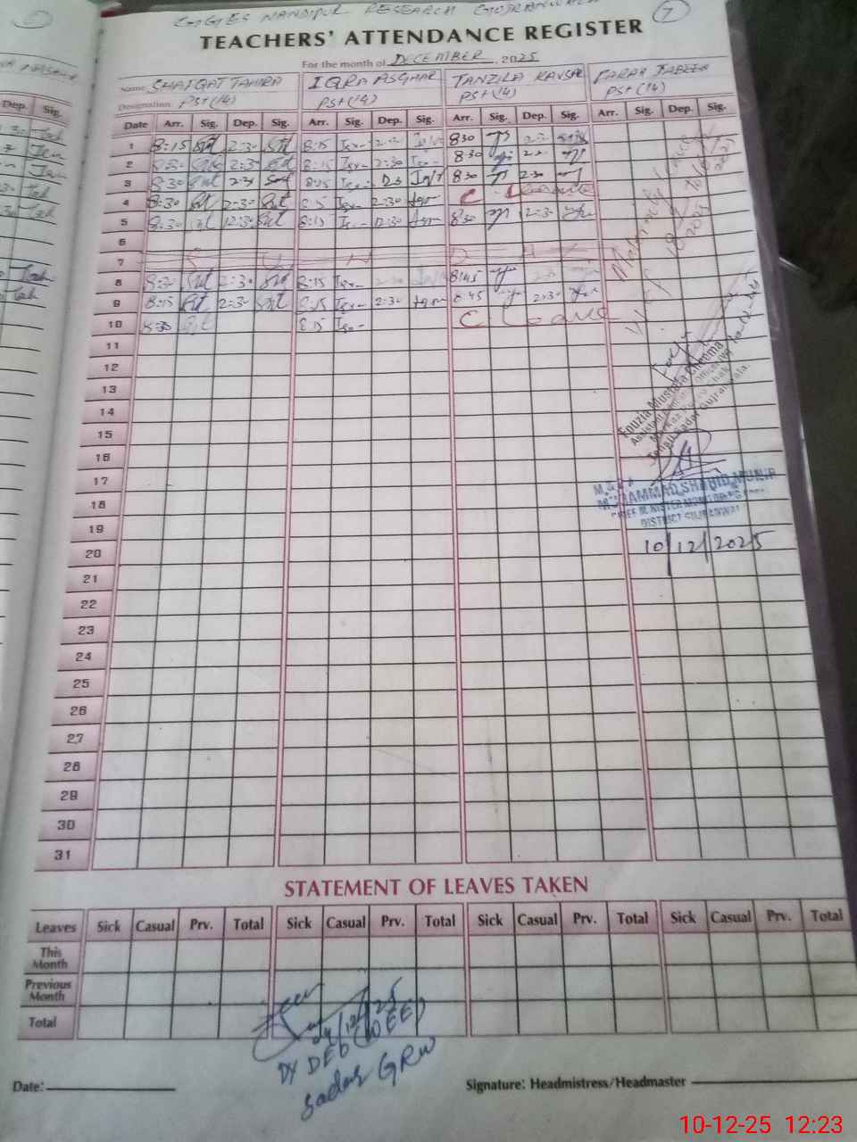 | 35**** | Ni**** Si**** | SST Computer Science | Regular | 0 | 0 | 0 | 0 | 0 | 0 | 0 | 0 | 0 | Absent (Un-Authorized) |