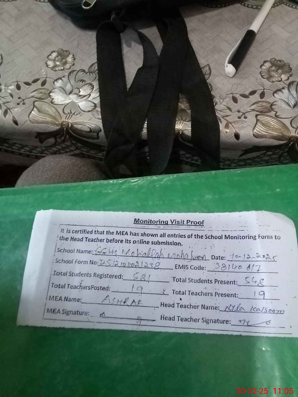 | EMIS Code: 38140617 | Name of School: GGHS MOHALLA MOHAJREEN | |||