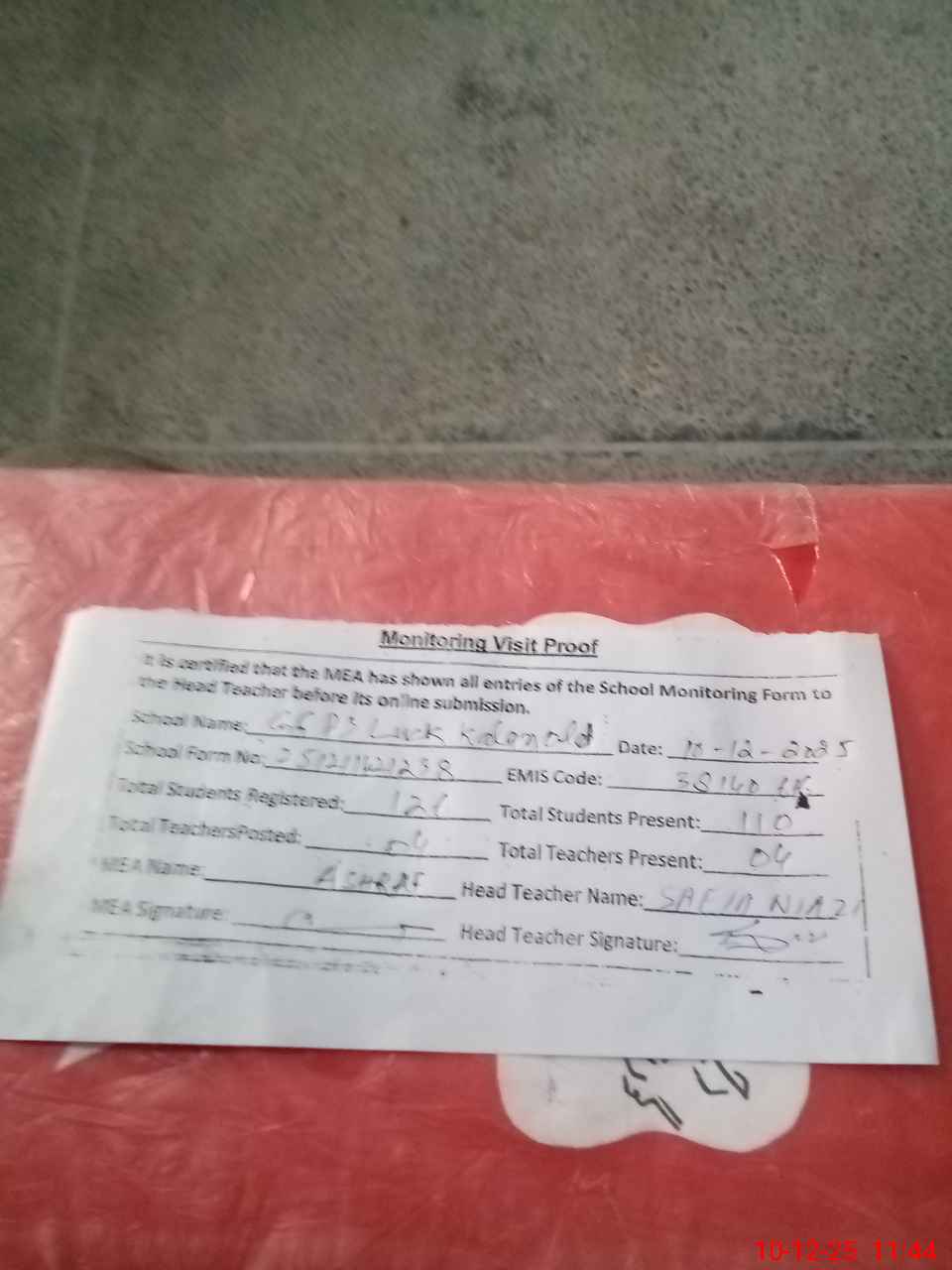 | EMIS Code: 38140616 | Name of School: GGPS LUCK KALAN OLD | |||
