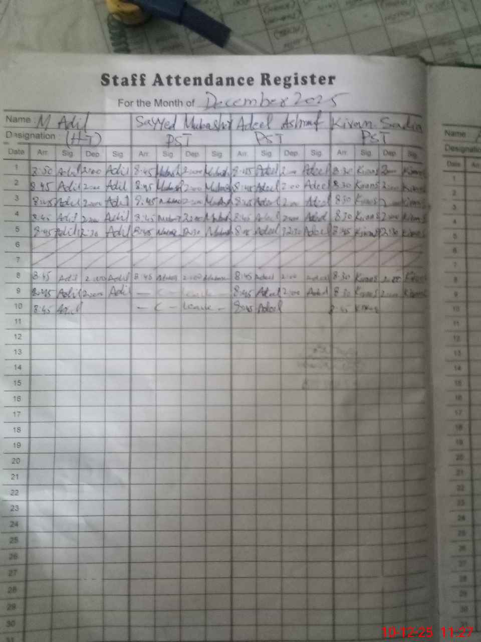 | CNIC | Full Name | Designation | R/C | Absence During Last Calender Month |