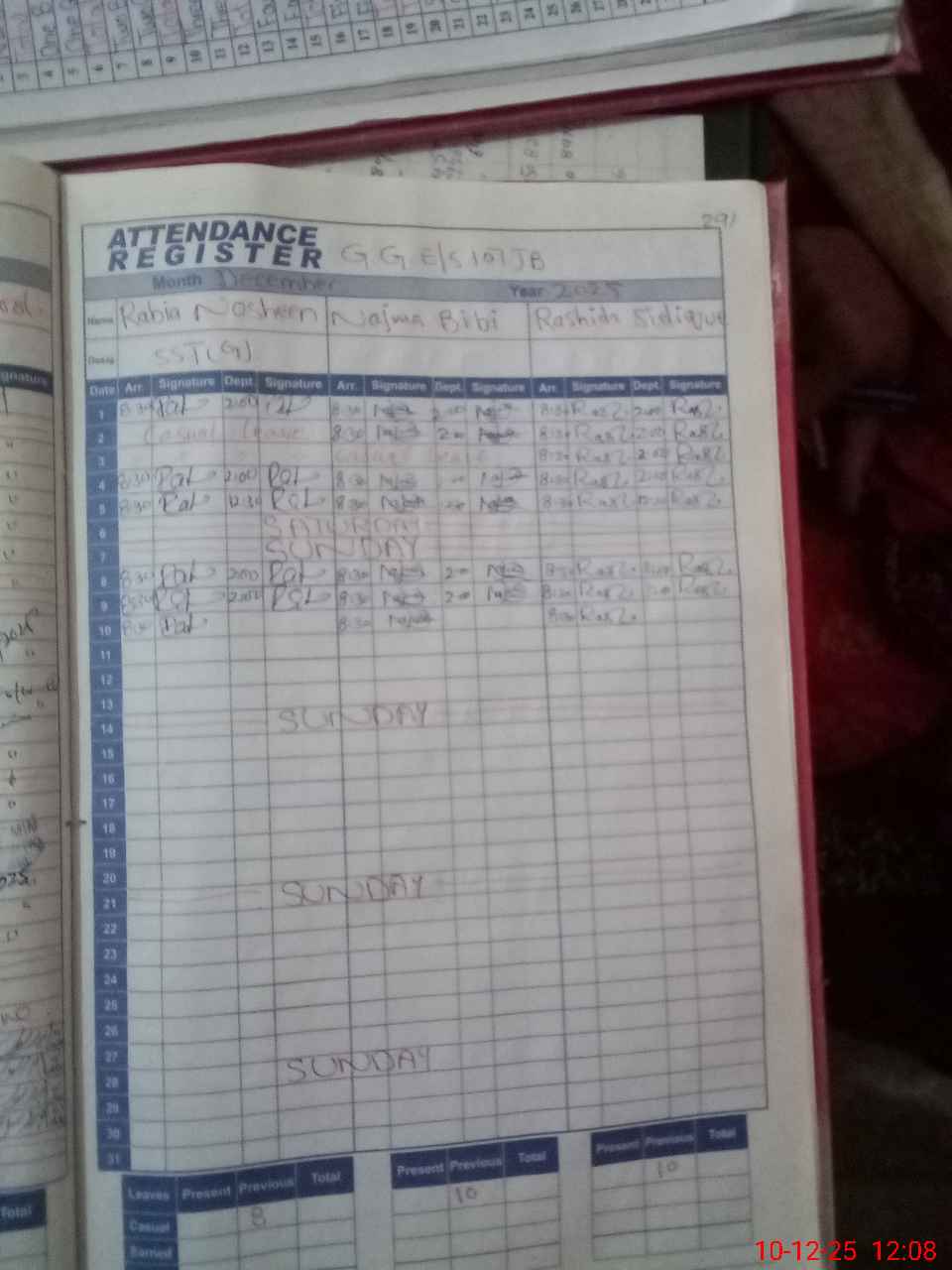 | CNIC | Full Name | Designation | R/C | Absence During Last Calender Month |