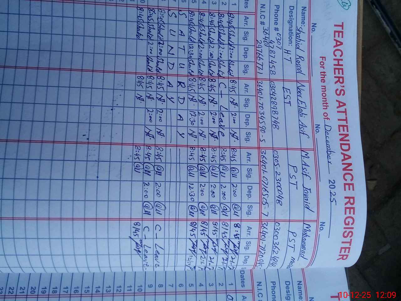 | Name: SH**** RA**** Designation: (School Headmaster's/Headmistress's) PST Phone/Cell Number: 03**** |