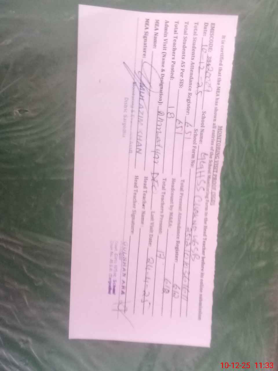 | Monitoring Date: 10-12-2025 | Start Time: 10-12-2025 10:36 AM | End Time: 10-12-2025 11:33 AM | Name of MEA: MU**** KH**** | |