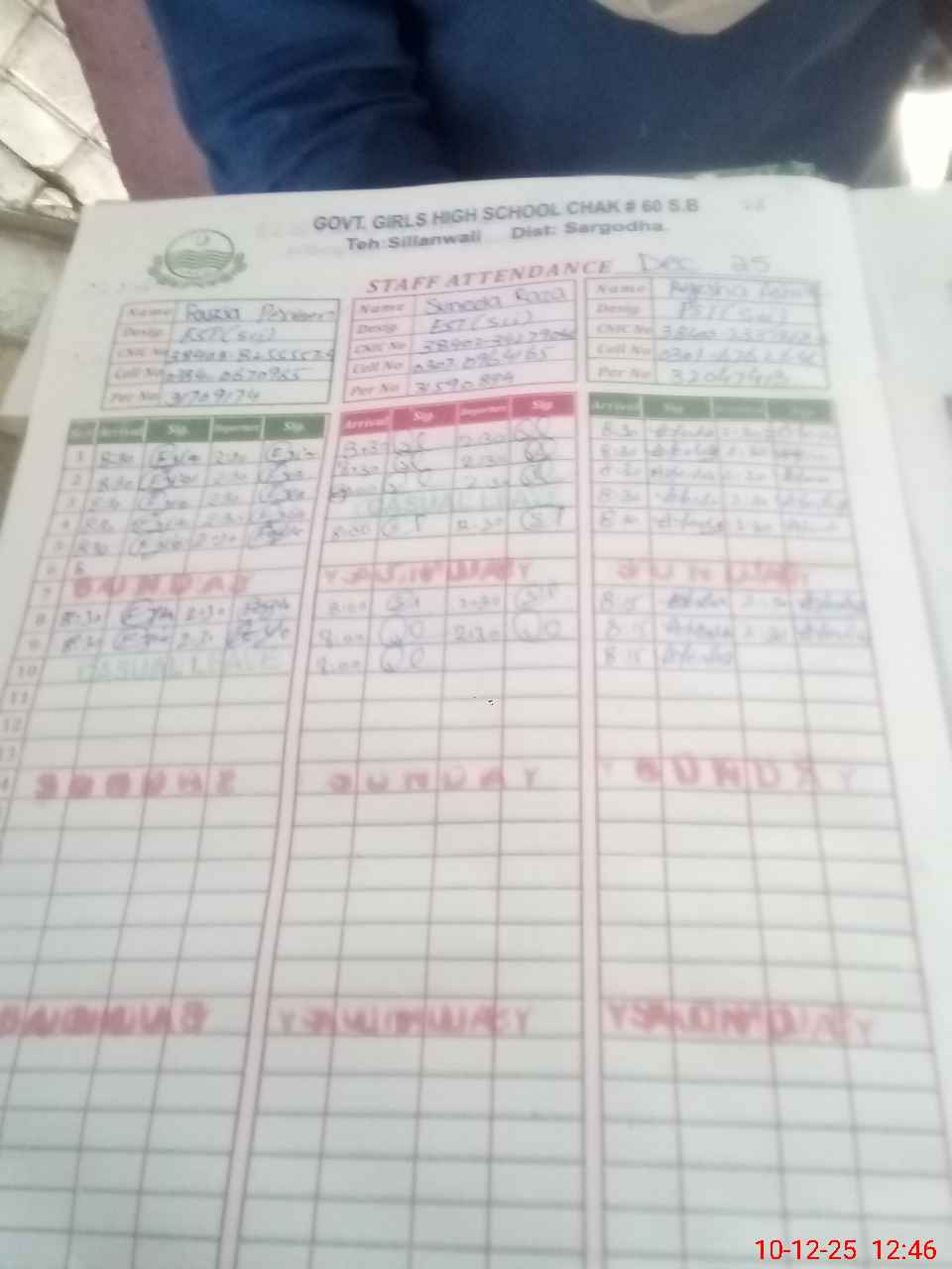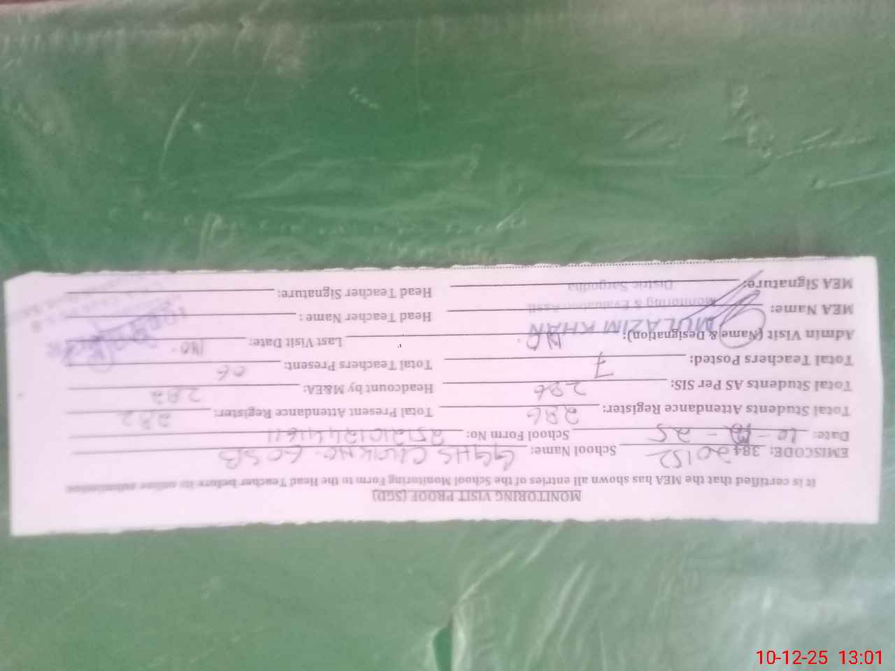 | Name: IQ**** MA**** Designation: (School Headmaster's/Headmistress's) SSE Phone/Cell Number: 03**** |