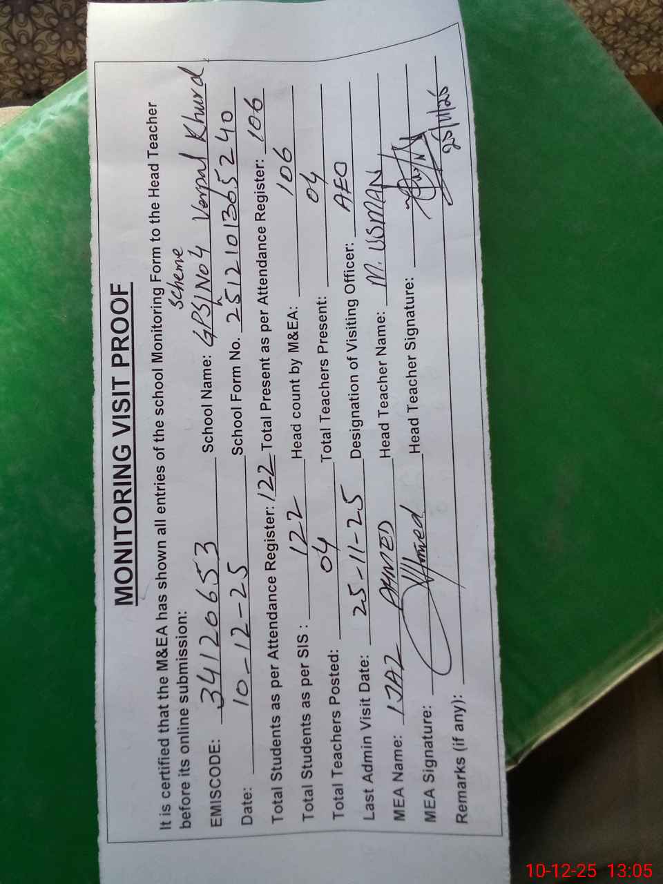| EMIS Code: 34120653 | Name of School: GPS SCHEME NO.04 VERPAL KHURD | |||