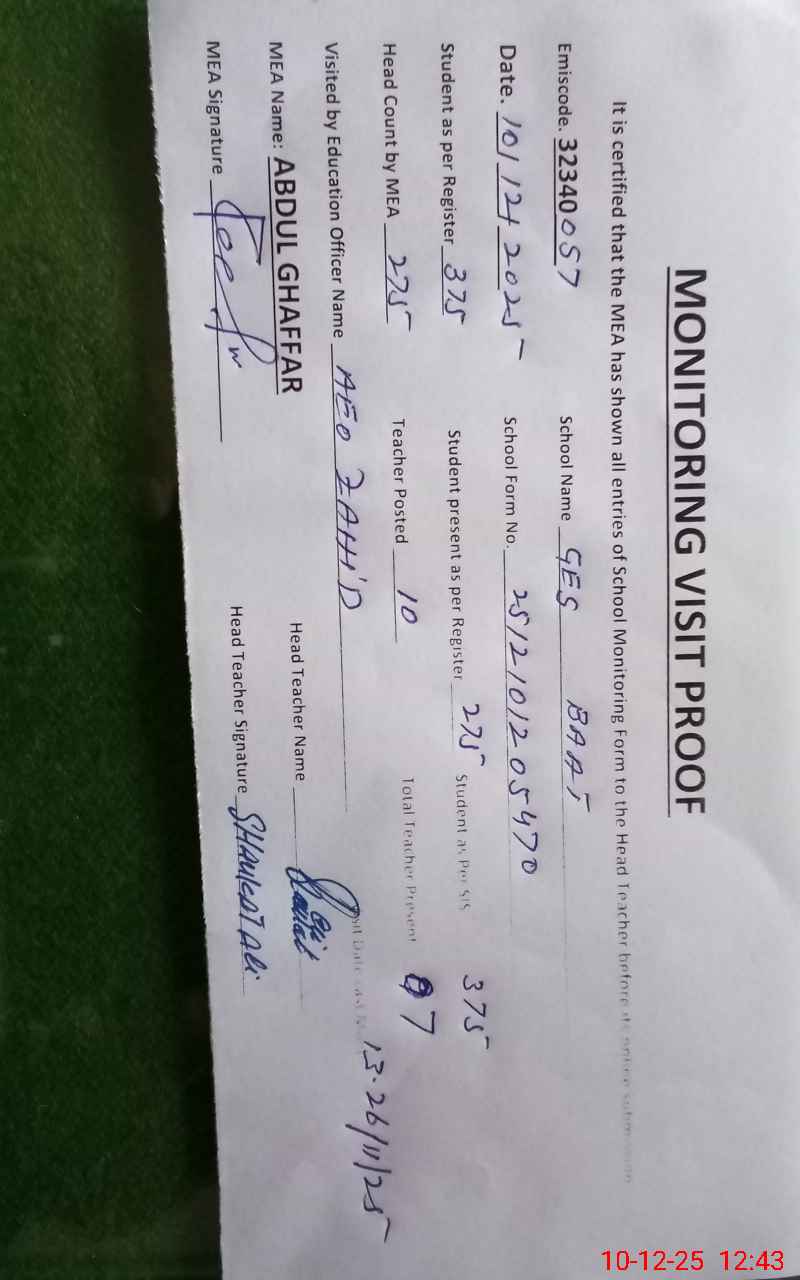 | Certified that this School was Inspected by the Undersigned MEA/DMO Today and the Information Stated Above is as Per Record. | |||||