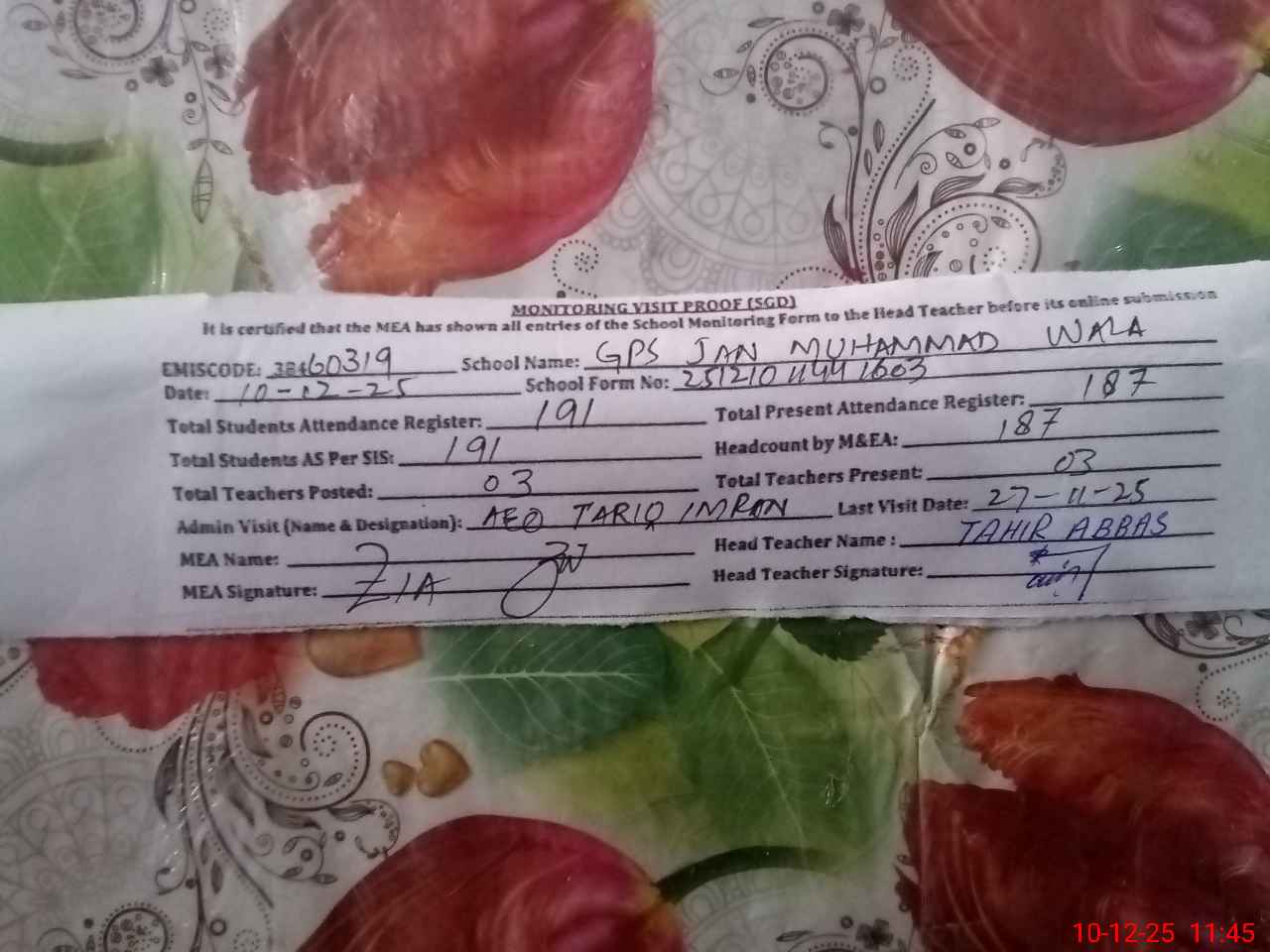 | EMIS Code: 38460319 | Name of School: GPS JAN MUHAMMAD WALA | |||