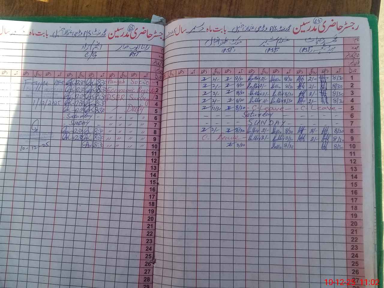 | CNIC | Full Name | Designation | R/C | Absence During Last Calender Month |