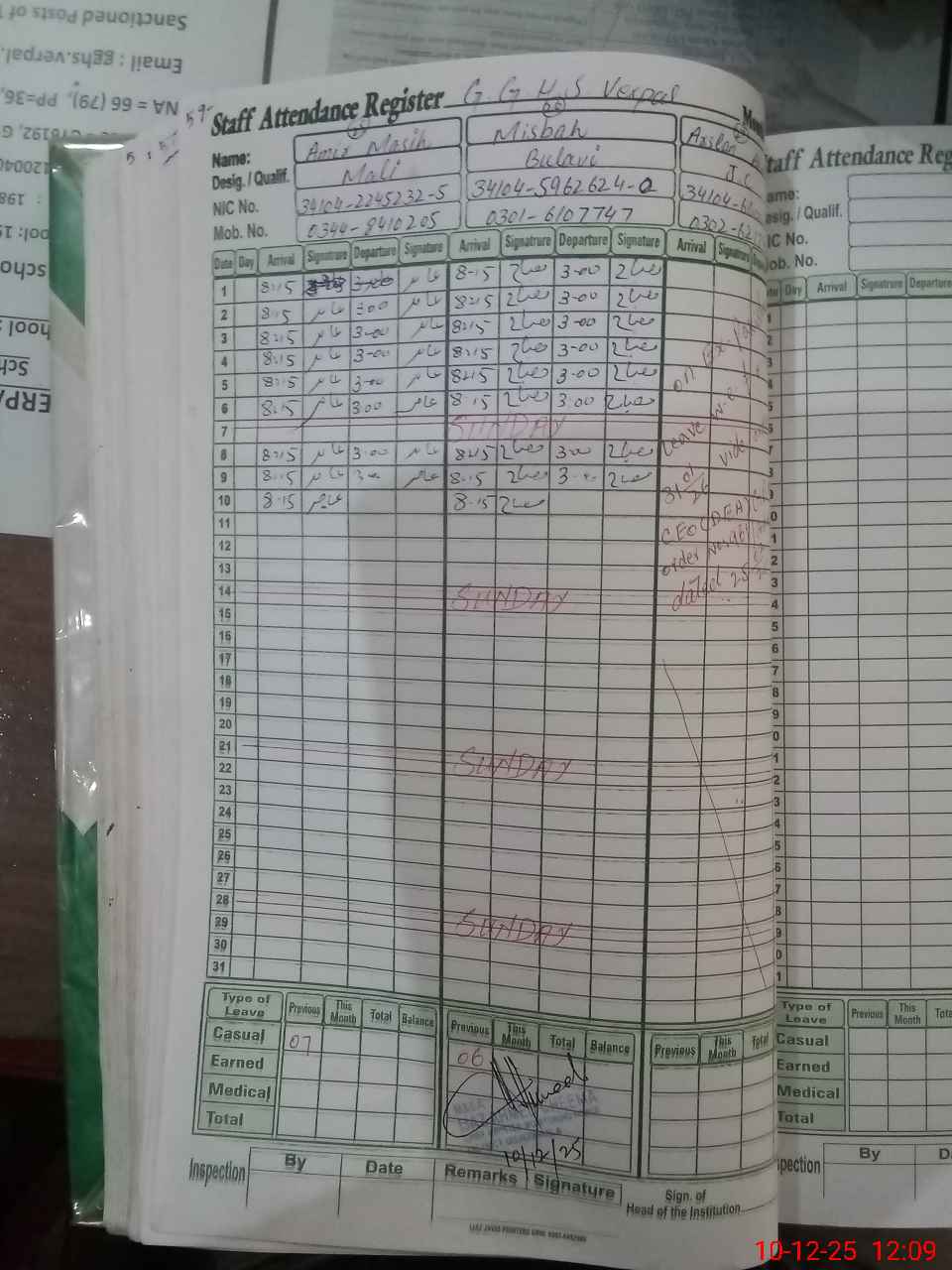 | Remarks (Use Separate Page if Required): Teacher Amina Zafar applied for maternity leave from 16 September 25 to 14 December 25 but her Leave still not approved | |||||