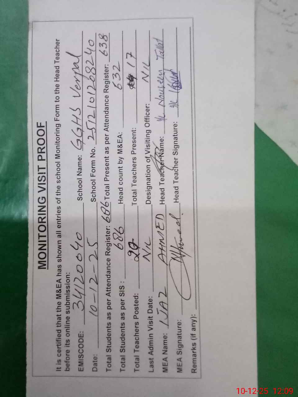 | EMIS Code: 34120040 | Name of School: GGHS VERPAL | |||