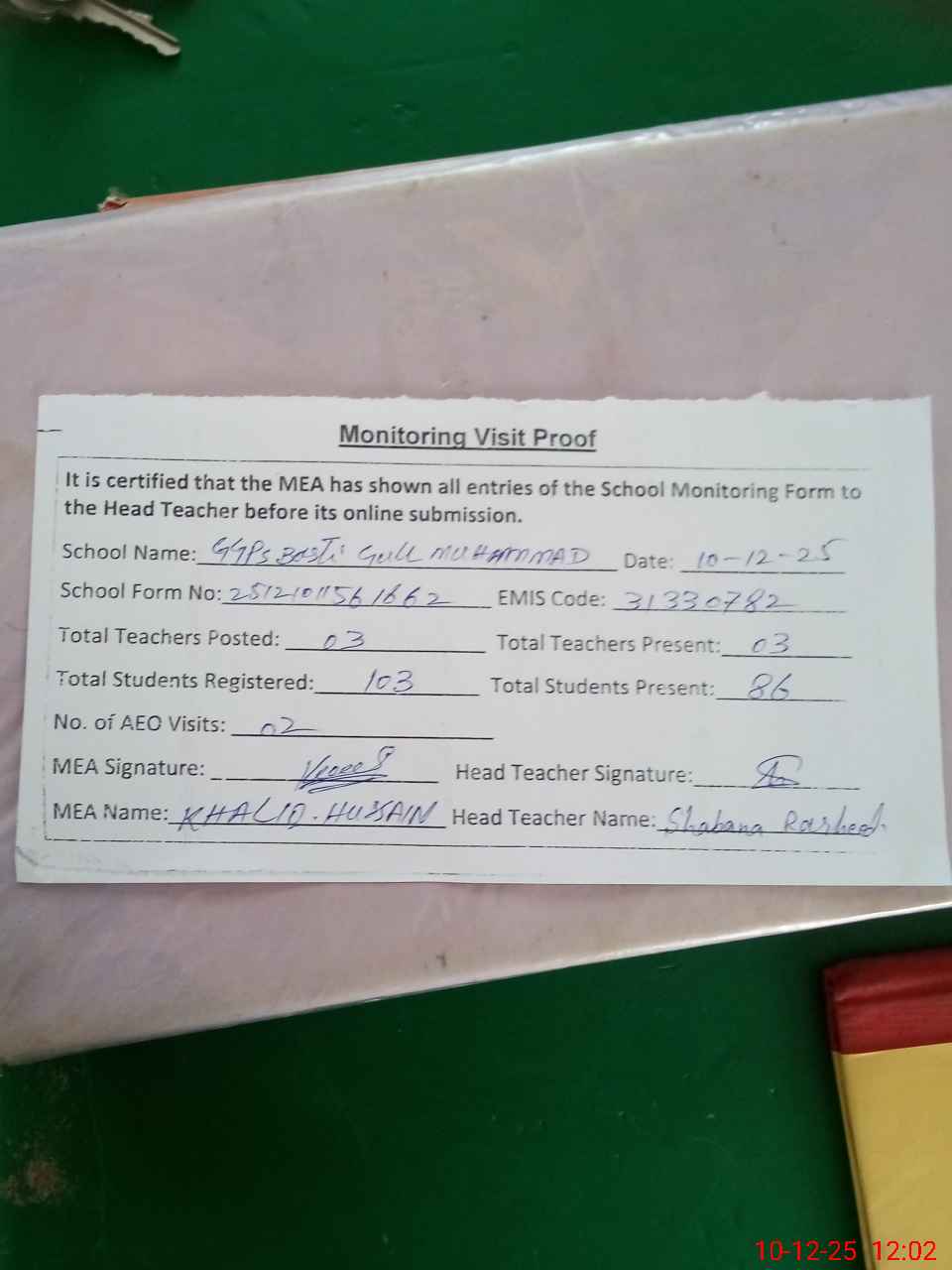 | EMIS Code: 31330782 | Name of School: GGPS BASTI GULL MUHAMMAD | |||
