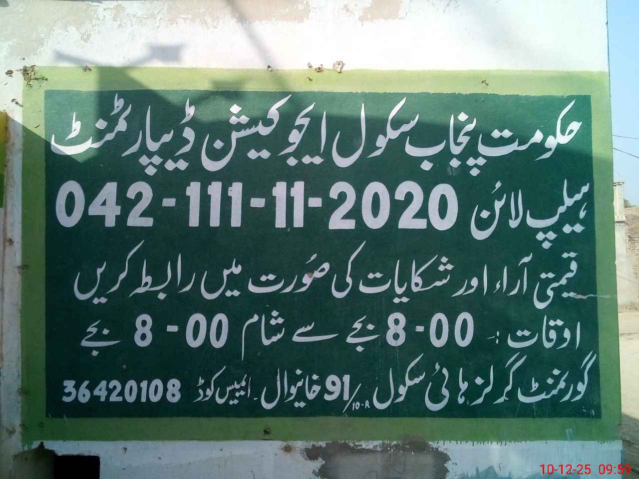 | EMIS Code: 36420108 | Name of School: GGHS 91/10-R, KHANEWAL | |||
