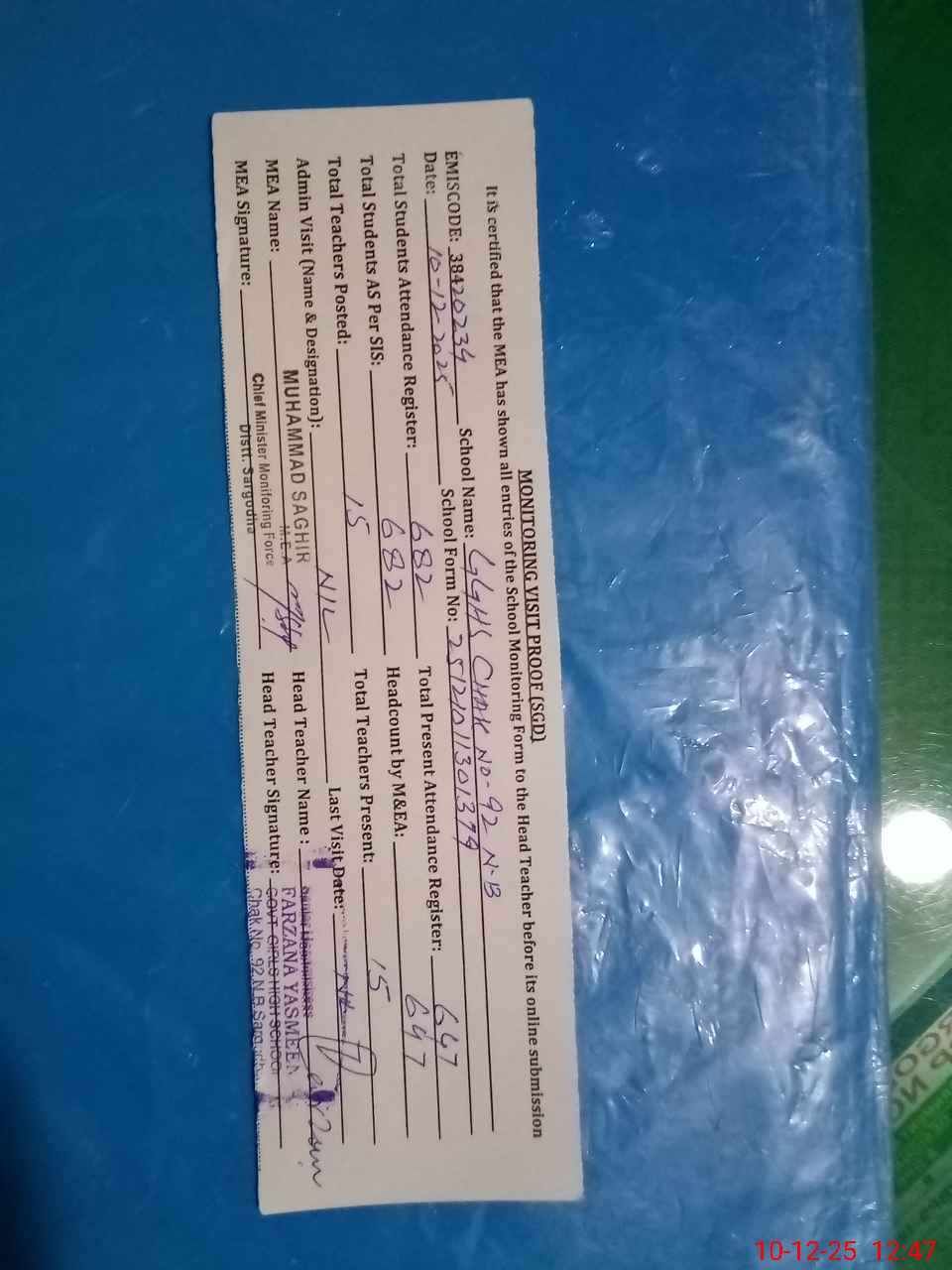 | EMIS Code: 38420234 | Name of School: GGHS CHAK NO.92 NB | |||