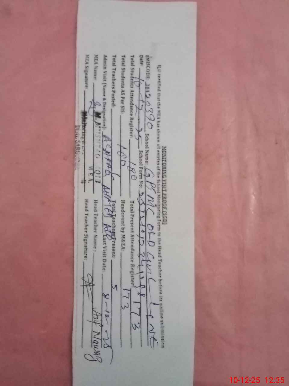 | Certified that this School was Inspected by the Undersigned MEA/DMO Today and the Information Stated Above is as Per Record. | |||||