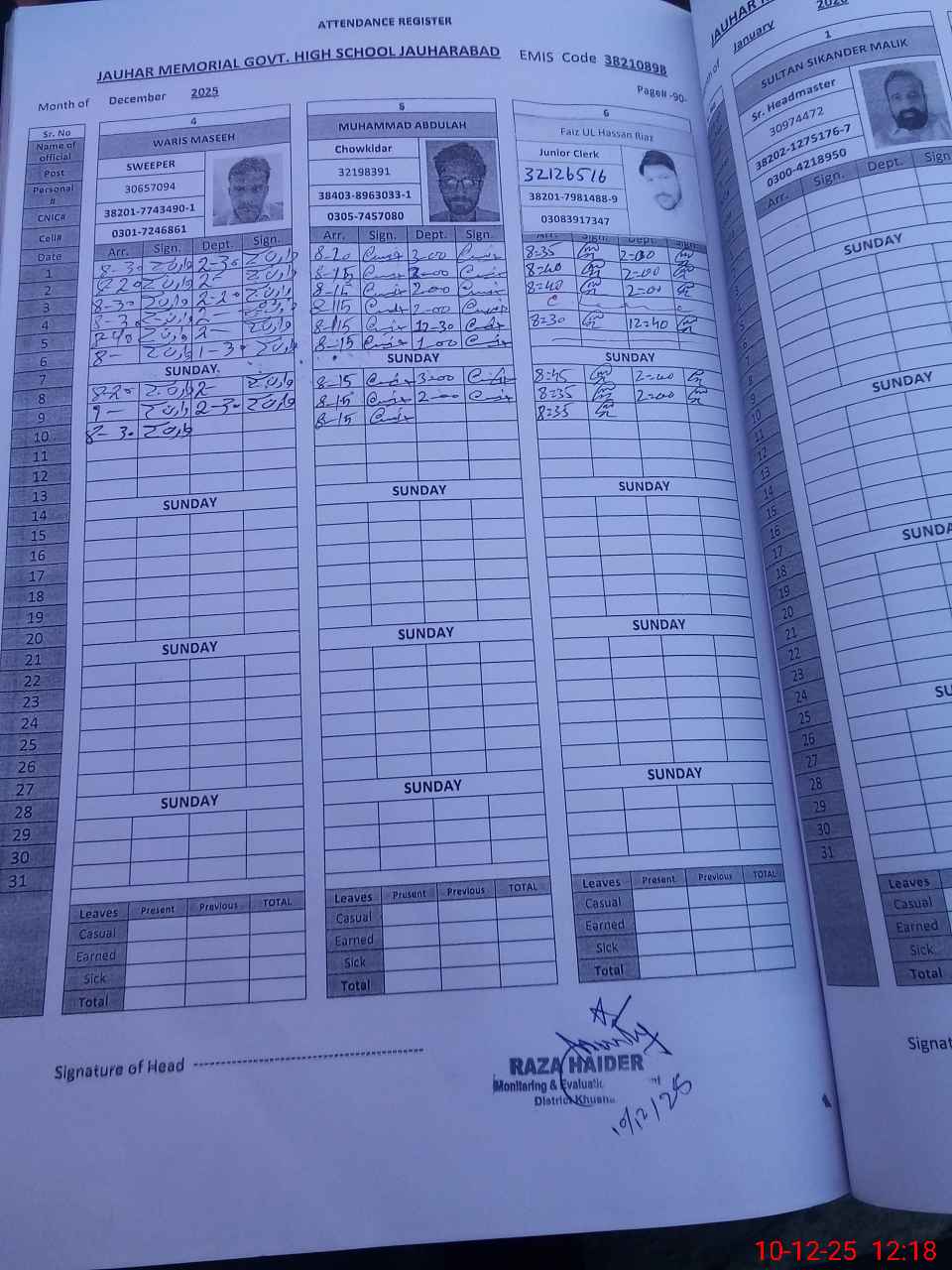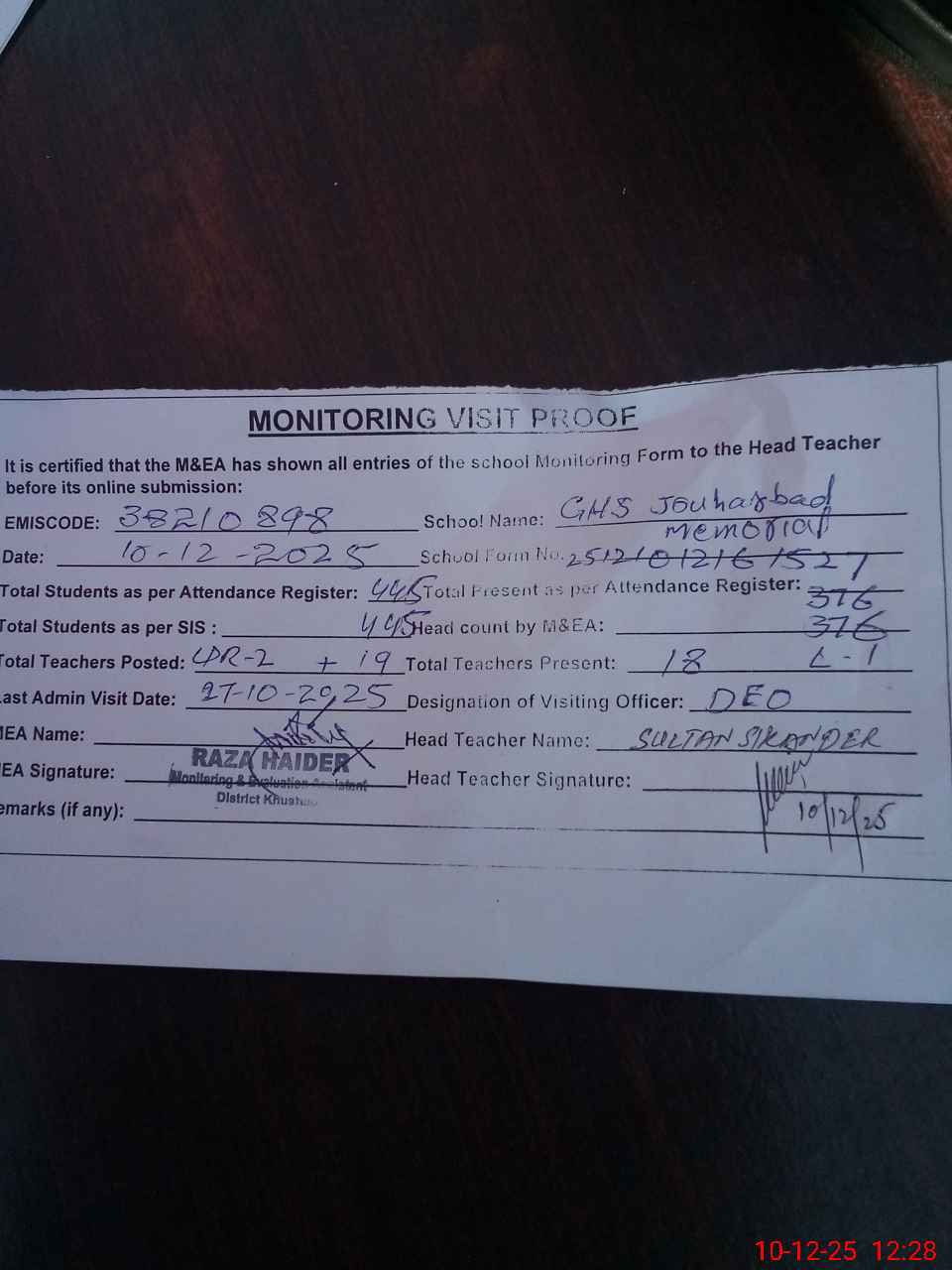 | EMIS Code: 38210898 | Name of School: GHS JOUHAR MEMORIAL JUHARABAD | |||