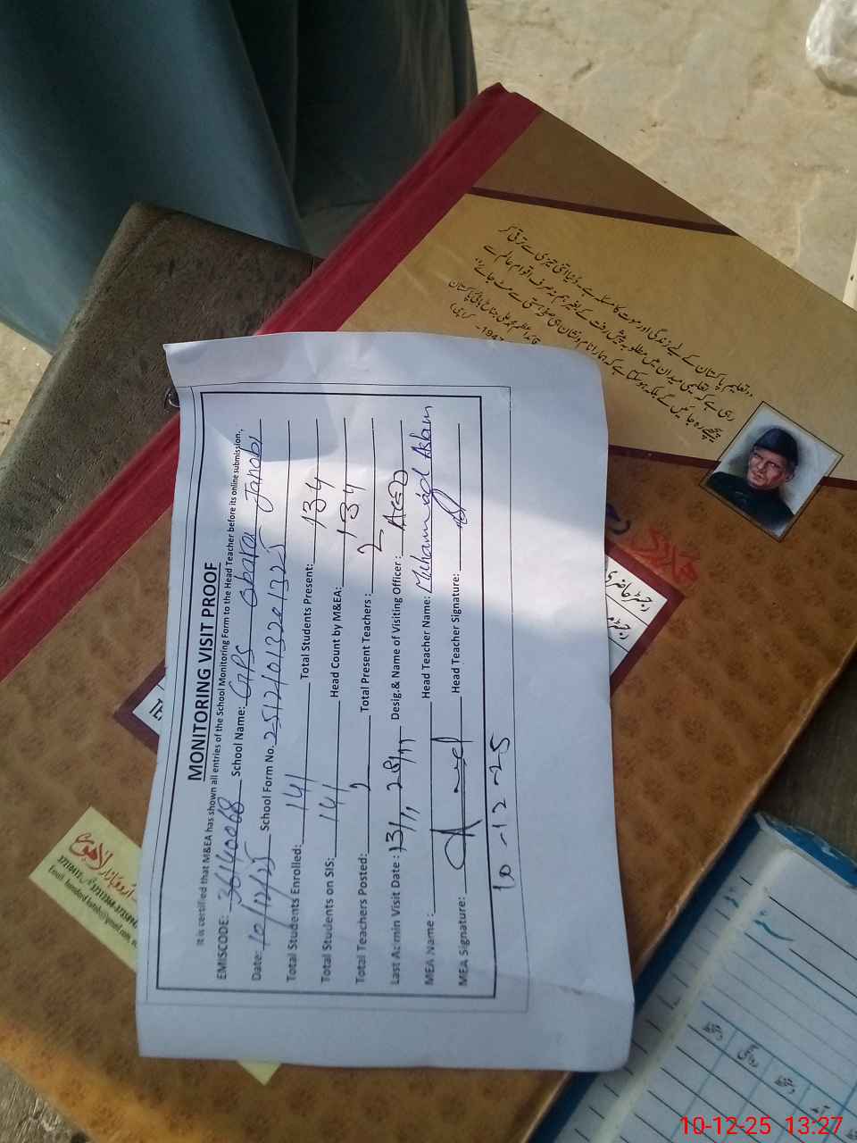 | Name: M.As**** Designation: (School Headmaster's/Headmistress's) Pst Phone/Cell Number: 03**** |