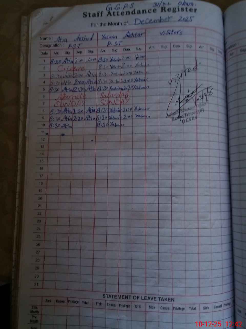 | Remarks (Use Separate Page if Required): last administrator visit was carried out by AEO on 3/12/2025 | |||||