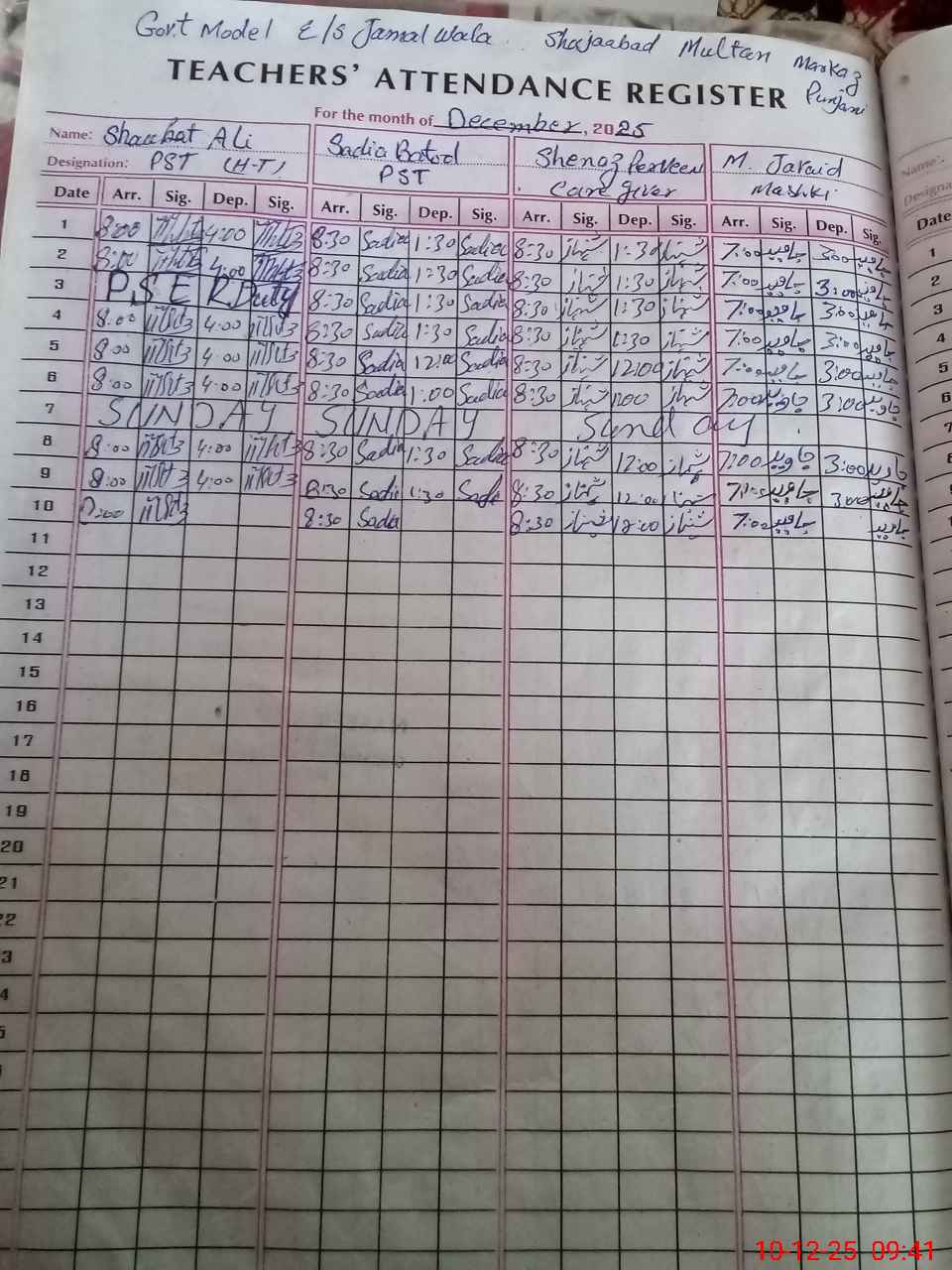 | Name: Sh**** Al**** Designation: (School Headmaster's/Headmistress's) PST/PTC/JV Phone/Cell Number: 03**** |