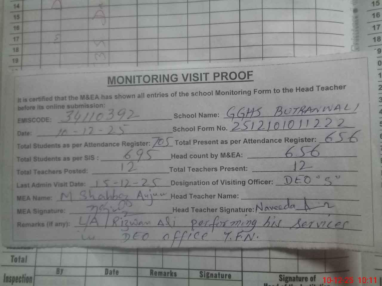 | Certified that this School was Inspected by the Undersigned MEA/DMO Today and the Information Stated Above is as Per Record. | |||||