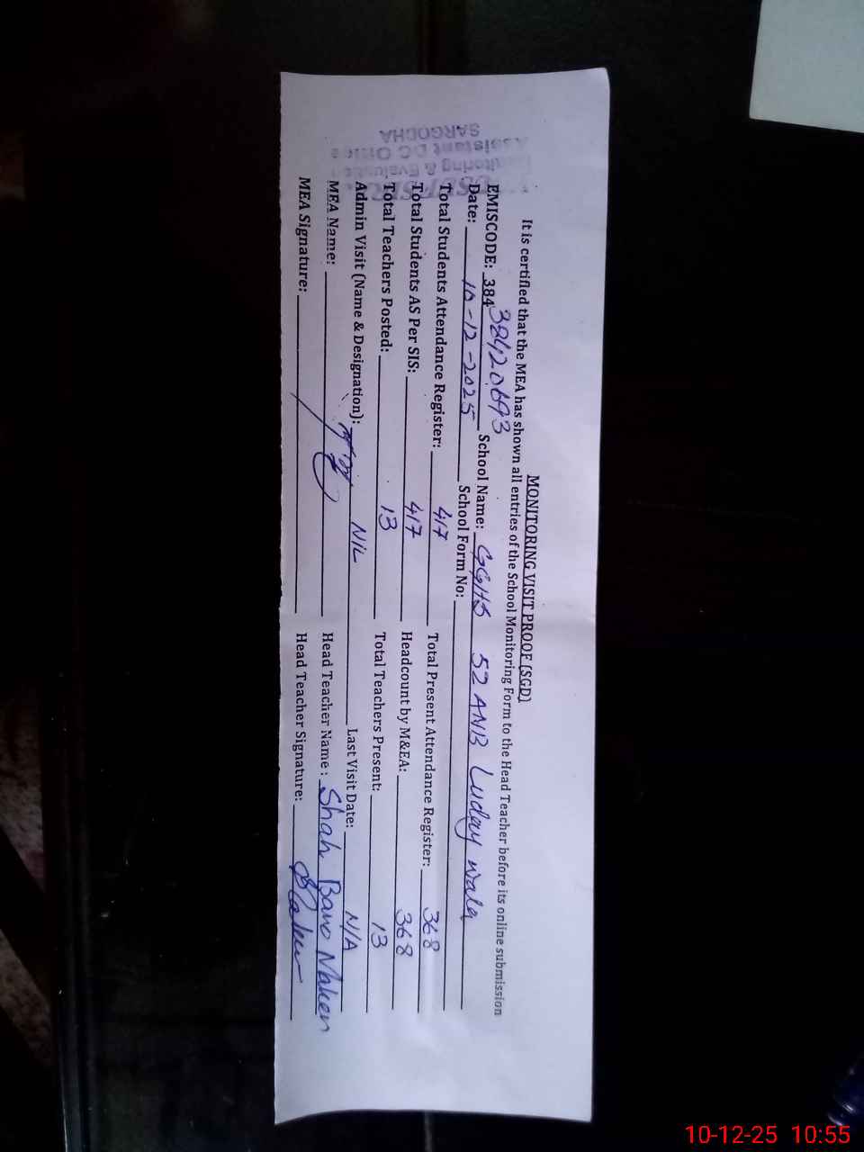 | Certified that this School was Inspected by the Undersigned MEA/DMO Today and the Information Stated Above is as Per Record. | |||||