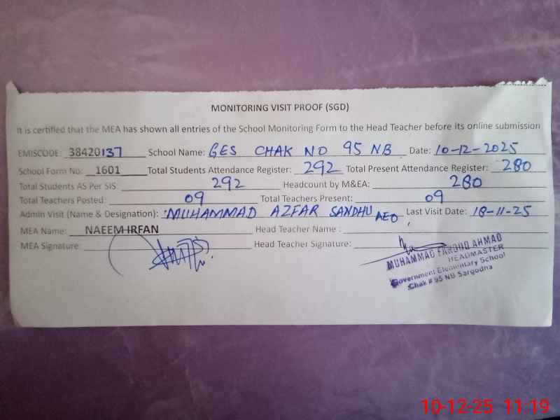 | EMIS Code: 38420137 | Name of School: GES CHAK NO.95 NB | |||