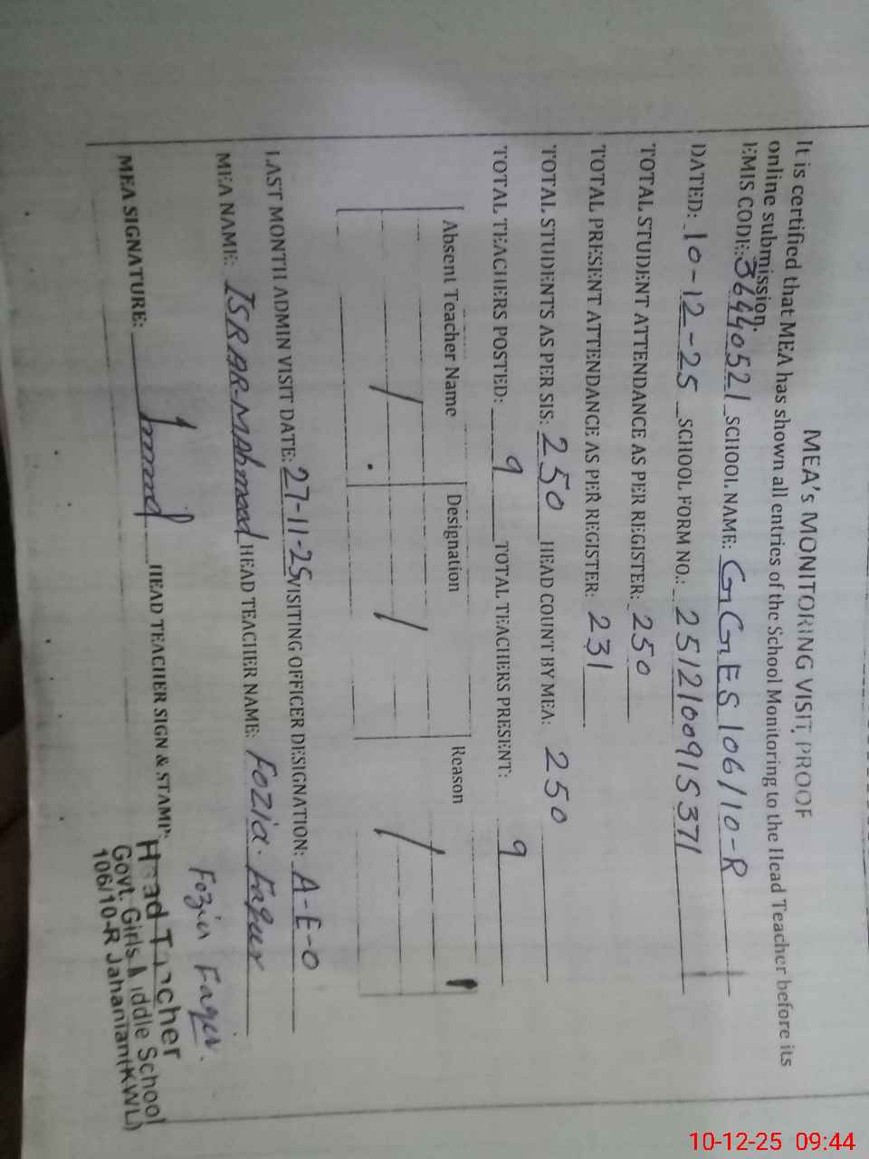 | EMIS Code: 36440521 | Name of School: GGES 106/10-R, JAHANIAN | |||