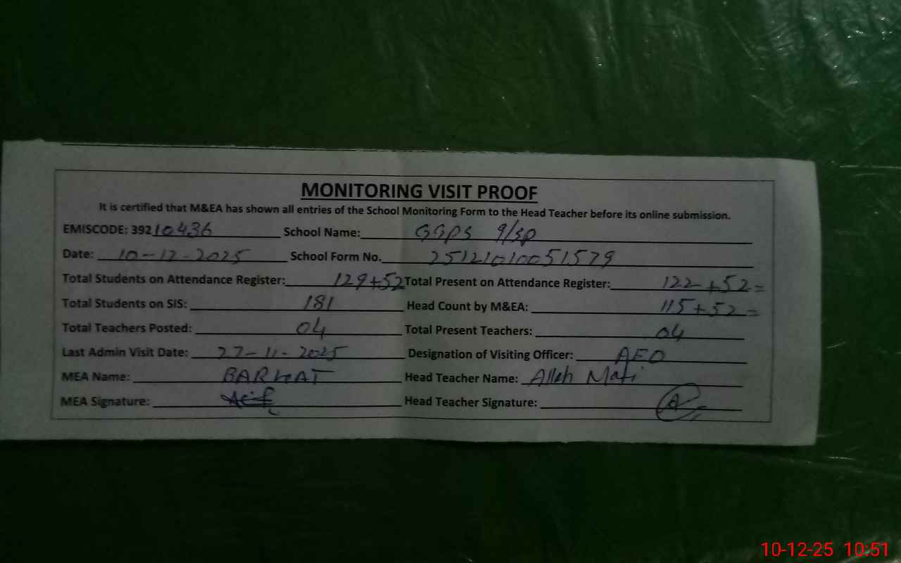 | EMIS Code: 39210436 | Name of School: GGPS 9 SP | |||